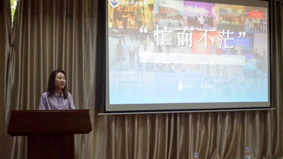 校团委兼职学生副书记、学院2022级研究生裴新丽从自身工作经历出发,对学生骨干进行了培训,并与参会人员进行了交流互动。