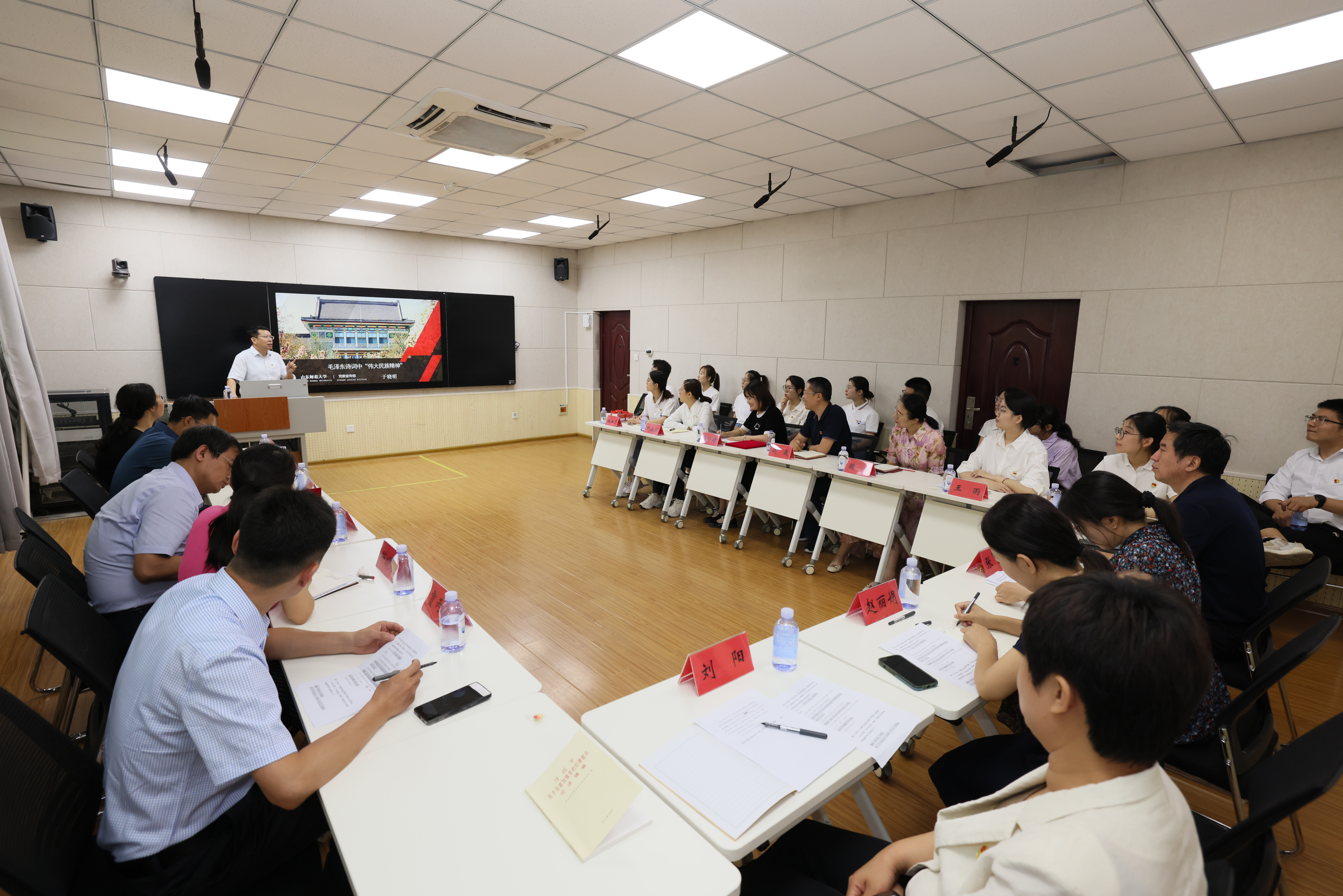 6月12日,校党委常委、宣传部部长于晓明以《毛泽东诗词中“伟大民族精神”》为题,为化学化工与材料科学学院分析与教学论博士研究生党支部全体党员讲授专题党课。学院党委负责同志、宣传部党支部全体党员共同参加活动。