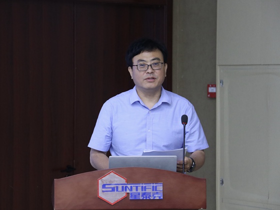 张建代表学校对会议的召开表示祝贺,向各位专家学者长期以来对学校的关心支持表示感谢,并简要介绍了学校办学历程、学科建设和人才培养的基本情况。他指出,为提升我国微电子行业在核心知识产权、技术原创性、人才团队,以及设备和材料方面的整体竞争力,推动国产光刻胶事业发展和技术突破,经山东省科技厅批准,潍坊星泰克微电子材料有限公司与学校联合开展了山东省光刻胶重点实验室的筹建工作,并已取得良好的建设成效。学校将继续大力支持实验室建设,不断加深与潍坊星泰克微电子材料有限公司的合作,实现产学研深度融合,持续提升承担重大项目的能力,助力学校人才培养与平台建设;也恳请大家对实验室的工作多提宝贵意见,共同促进山东省光刻胶重点实验室(筹)建设再上新台阶。