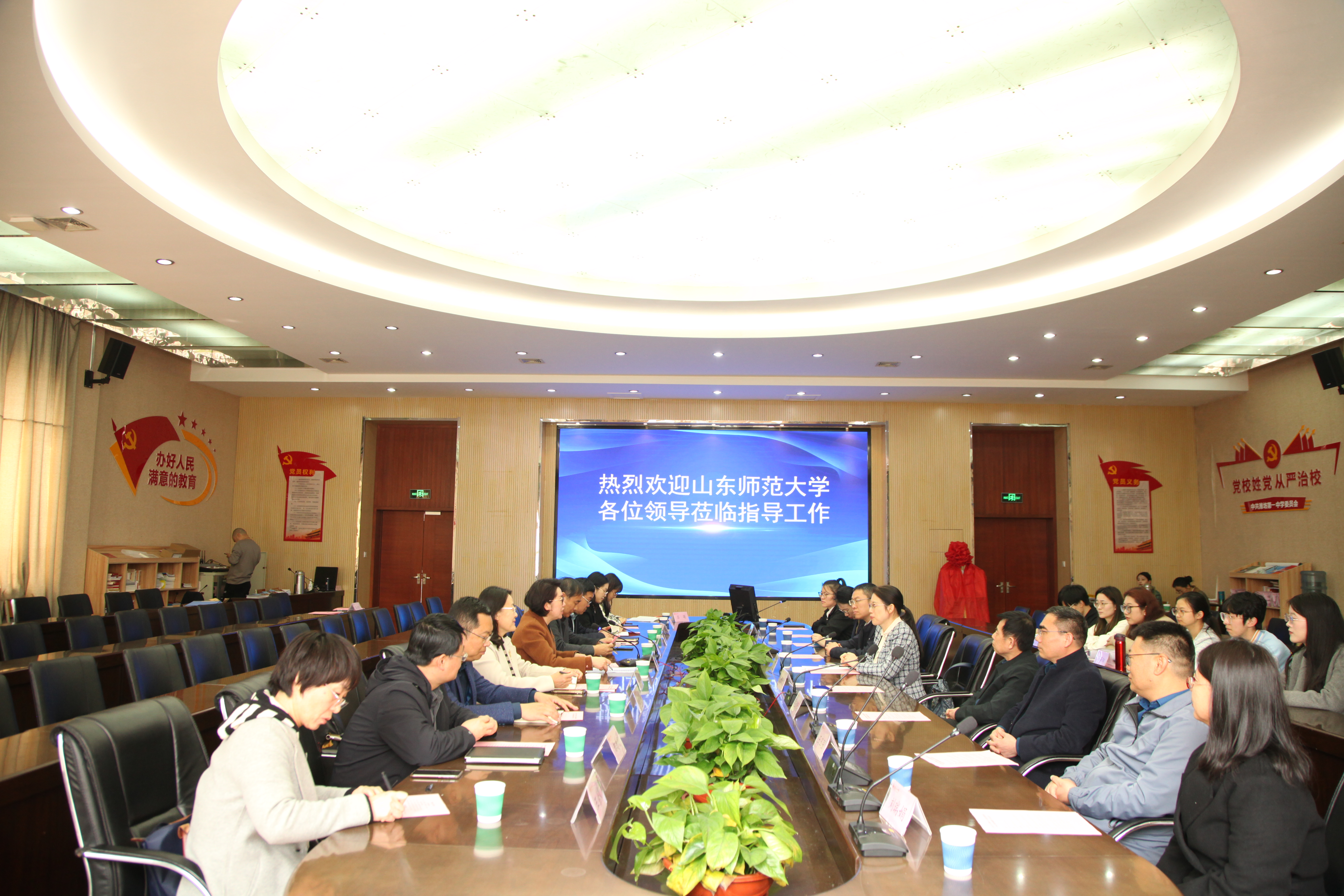 在看望实习学生座谈会上,李娜听取了教育实习工作汇报,向潍坊市教育局、潍坊一中领导老师长期以来对山东师范大学的关心支持表示衷心感谢。她勉励实习学生要积极转变观念,将专业理论与实践相结合,虚心向潍坊一中优秀指导教师请教学习,努力提升自己的教学技能与实践能力,充分彰显山东师范大学学生的良好精神风貌。李娜指出,学校与潍坊一中在教育实习等方面有着密切交流,双方将以此次实践教学基地共建为契机,积极探索合作新领域模式。下一步,希望双方进一步发挥学科优势,凝练特色,开展更深层次的产学研合作与协同育人创新,构建联动发展机制,进一步提升学校服务经济社会的能力。