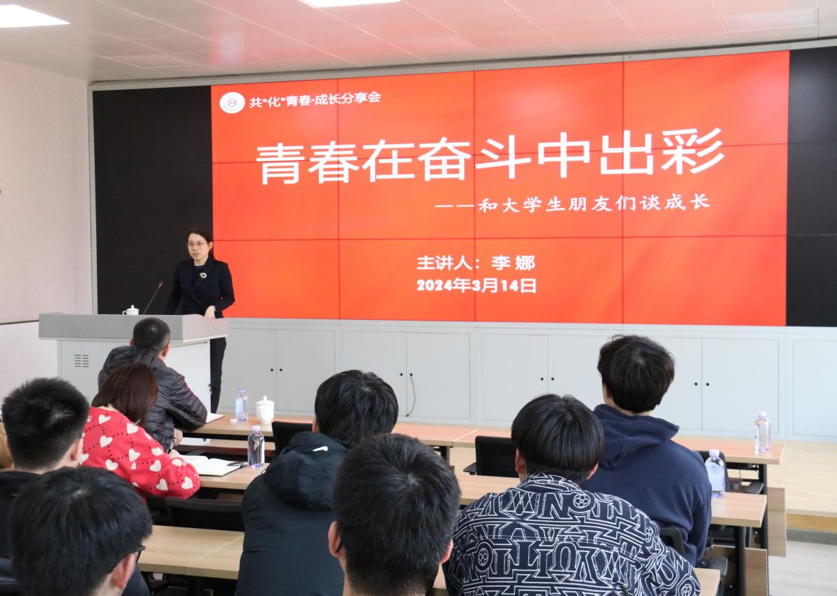 3月14日下午,校党委常委、副校长,学院院长李娜做客首期“共‘化’青春·成长经验分享会”,在千佛山校区实验大楼211会议室为青年学生做了题为“青春在奋斗中出彩”的报告。