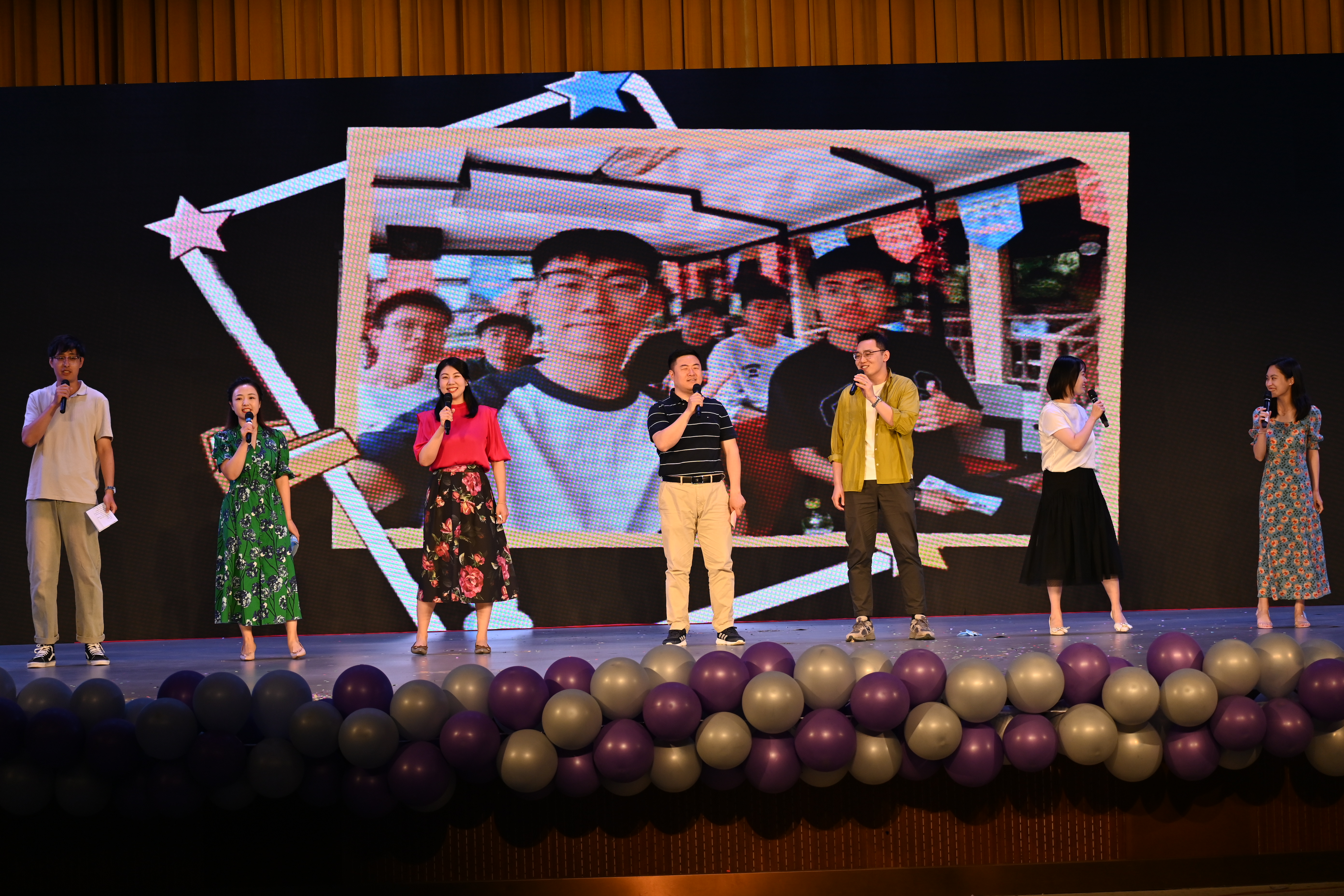 在精心制作的开场视频结束后,一曲古风流行乐的旋律响彻会场,今年的毕业晚会也在《寄明月》充满青春活力的开场舞中拉开了序幕。本次晚会分为三个篇章,在第一篇章“启程绕晨岚,旭日尚初升”中,舞蹈串烧《不如不跳》以“被套舞”的表演形式开场,诙谐幽默的动作引得了台下观众阵阵的笑声。朗诵节目《我骄傲,我是中国人》,两位领诵声音洪亮,与身后一众合诵配合巧妙,声音起伏有度,让人听得热血沸腾!第一篇章的结尾,由2019级辅导员孙朝阳和2019级部分学生带来的舞蹈《爱你》,灵动的舞姿与欢快的节奏相辉映,辅导员老师与毕业生共舞,尽显师生关系的融洽和睦。激动人心的抽奖时刻,每个人的眼神都聚焦在大屏幕之上,中奖者脸上挂满了喜悦。