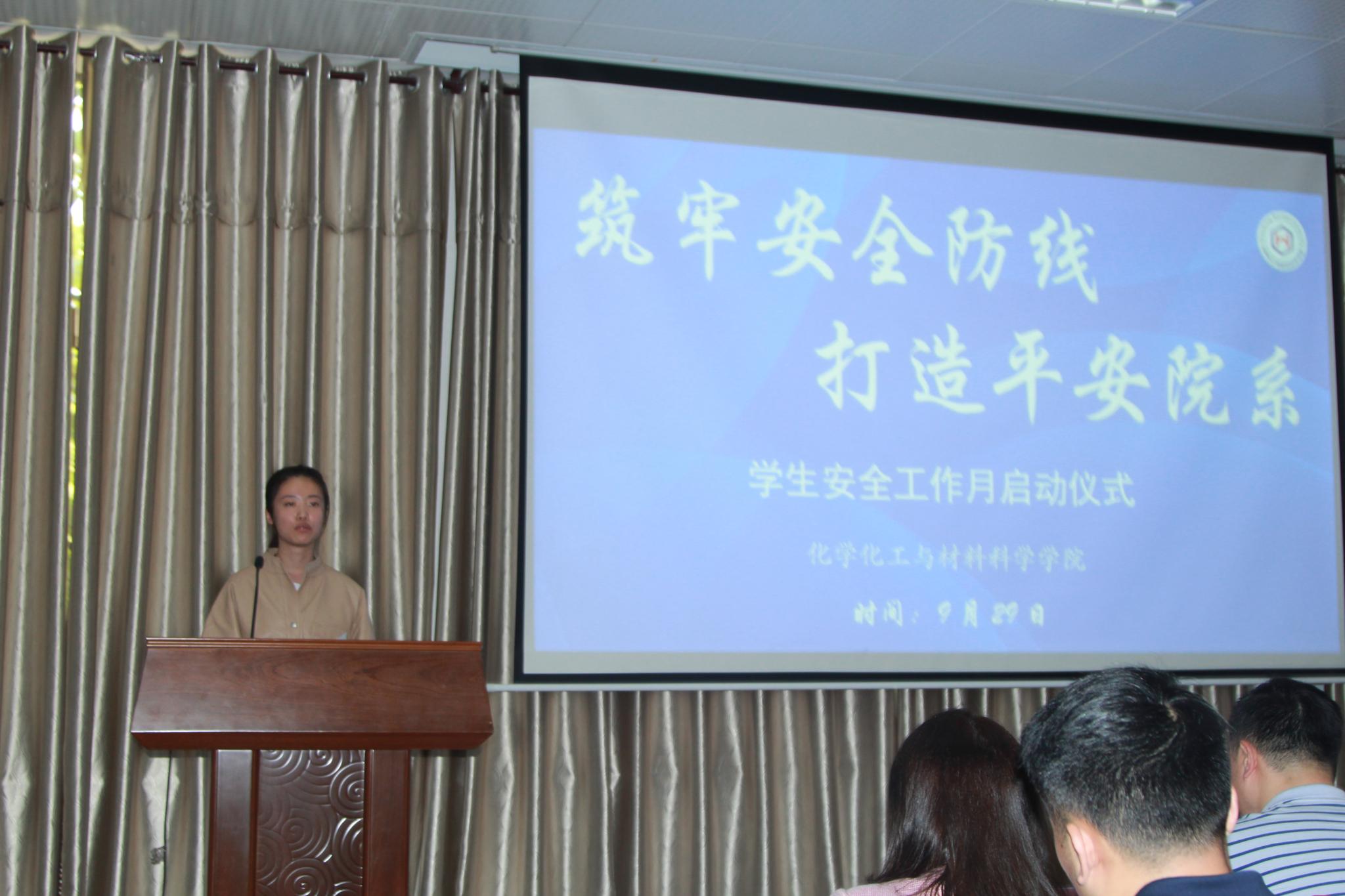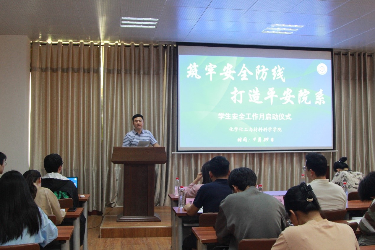 为喜迎党的二十大,进一步贯彻落实全国、全省和学校安全工作会议精神,统筹部署学院重点安全工作,维护学生正常的学习和生活秩序,促进学生身心健康发展。 9月29日下午,化学化工与材料科学学院于千佛山校区一号教学楼1201会议室举办“筑牢安全防线,打造平安院系”学生安全工作月启动仪式。化学院党委副书记孙南、团委书记兼学工办主任张书沂、2022级辅导员高艳丽、2019级辅导员孙朝阳参与会议,2020级辅导员周长富主持会议,学院本科生和研究生各年级的班长、支书、学生会有关安全工作的相关部门学生干部代表积极响应参与其中。