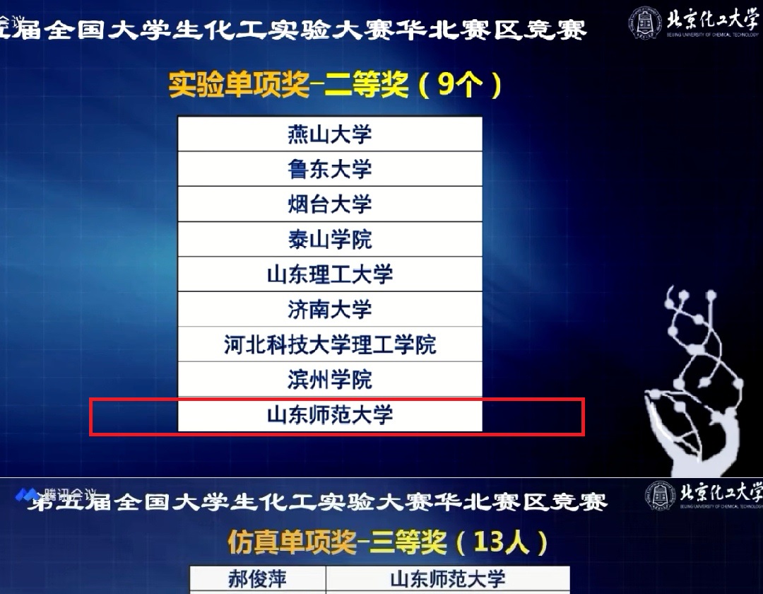 7月10日—7月13日,由中国化工教育协会、北京化工大学、化学工业出版社等联合承办的第五届全国大学生化工实验大赛华北赛区竞赛在云端举行。我院2019级化工专业郝俊萍、朱婉琪、李雨真三位同学在化工系主任张其坤以及王倩、钤小平老师的带领下,斩获华北赛区团队一等奖、实验单项二等奖、仿真单项三等奖等奖项,并晋级全国总决赛,取得历史性突破。