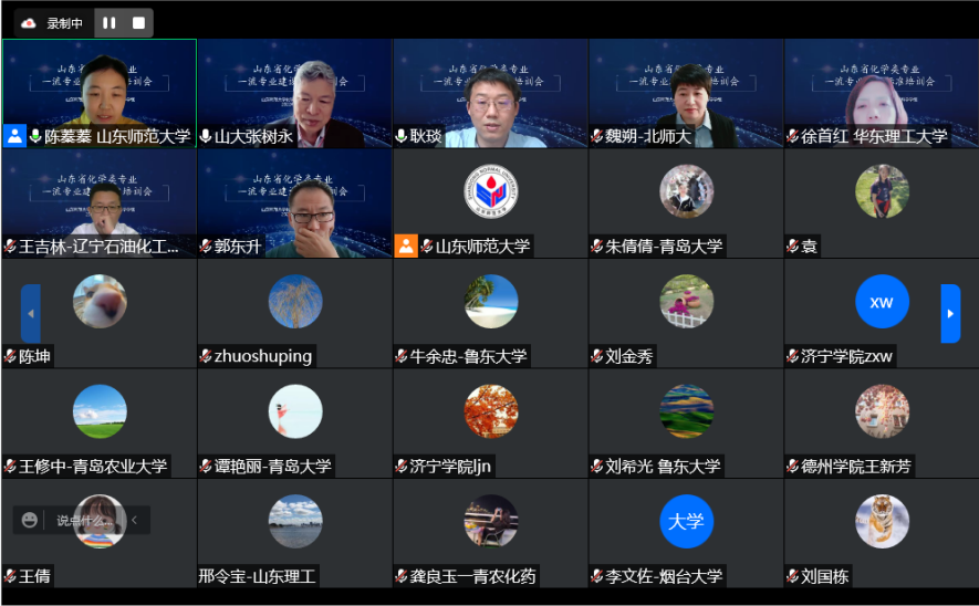 2022年5月14日,由2019-2022年山东省本科化学类专业及大学化学课程教学指导委员会主办,山东师范大学教务处、山东师范大学化学化工与材料科学学院、化学国家级实验教学示范中心(山东师范大学)承办的“山东省化学类专业一流专业建设标准培训会”通过腾讯会议的方式在线举行。华东理工大学化学与分子工程学院副院长徐首红教授,北京师范大学化学学院副院长魏朔教授,南开大学化学学院副院长郭东升教授,辽宁石油化工大学石油化工学院院长王吉林教授,教育部教指委委员、山东大学本科生院副院长张树永教授应邀出席,并就化学类专业一流专业建设标准和建设经验进行了报告和交流。会议由山东师范大学化学化工与材料科学学院副院长耿琰主持。