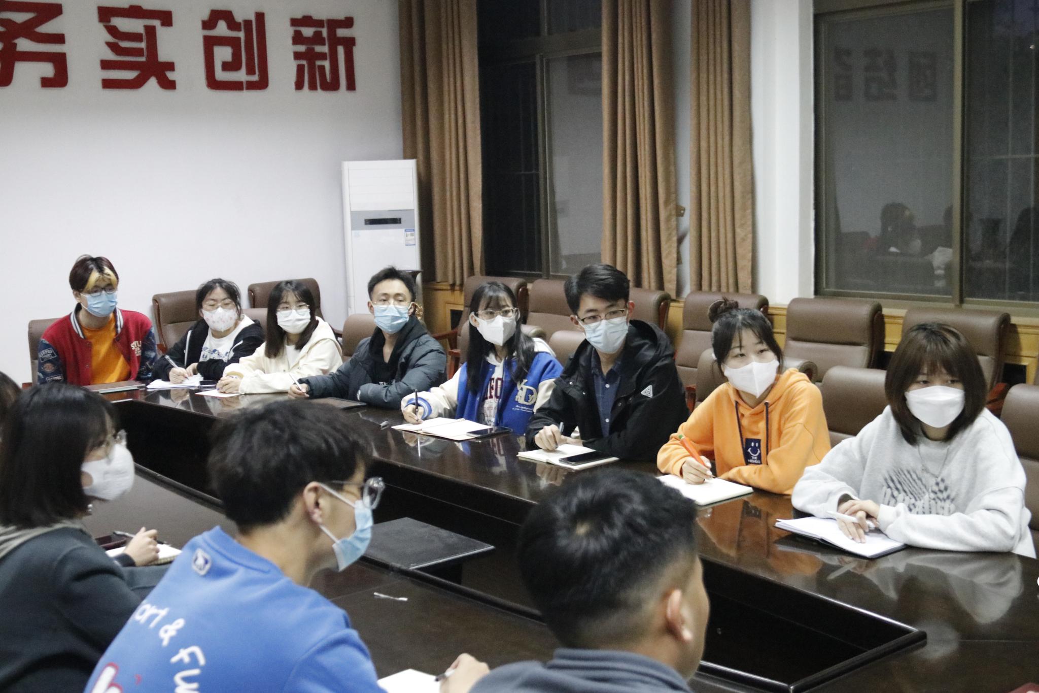 高艳丽及周长富带领主要学生干部梳理了近期工作任务。团员自我管理委员会与学生会各部门分别汇报本部门近期活动,讨论活动可行性及具体安排。在各部门工作汇报完毕后,高艳丽作出总结,要求分管主席负起责任,举办活动前一定严格遵守防疫政策,同时做好活动前后的宣传工作。周长富指出,封校对于学生工作来说,不仅是挑战,同时也是契机,是学生干部们锻炼能力的机会。在当下校园中,结合疫情防控实际,举办的活动要坚持以学生为本,契合学生心理健康动态,进一步优化相关活动的开展模式。