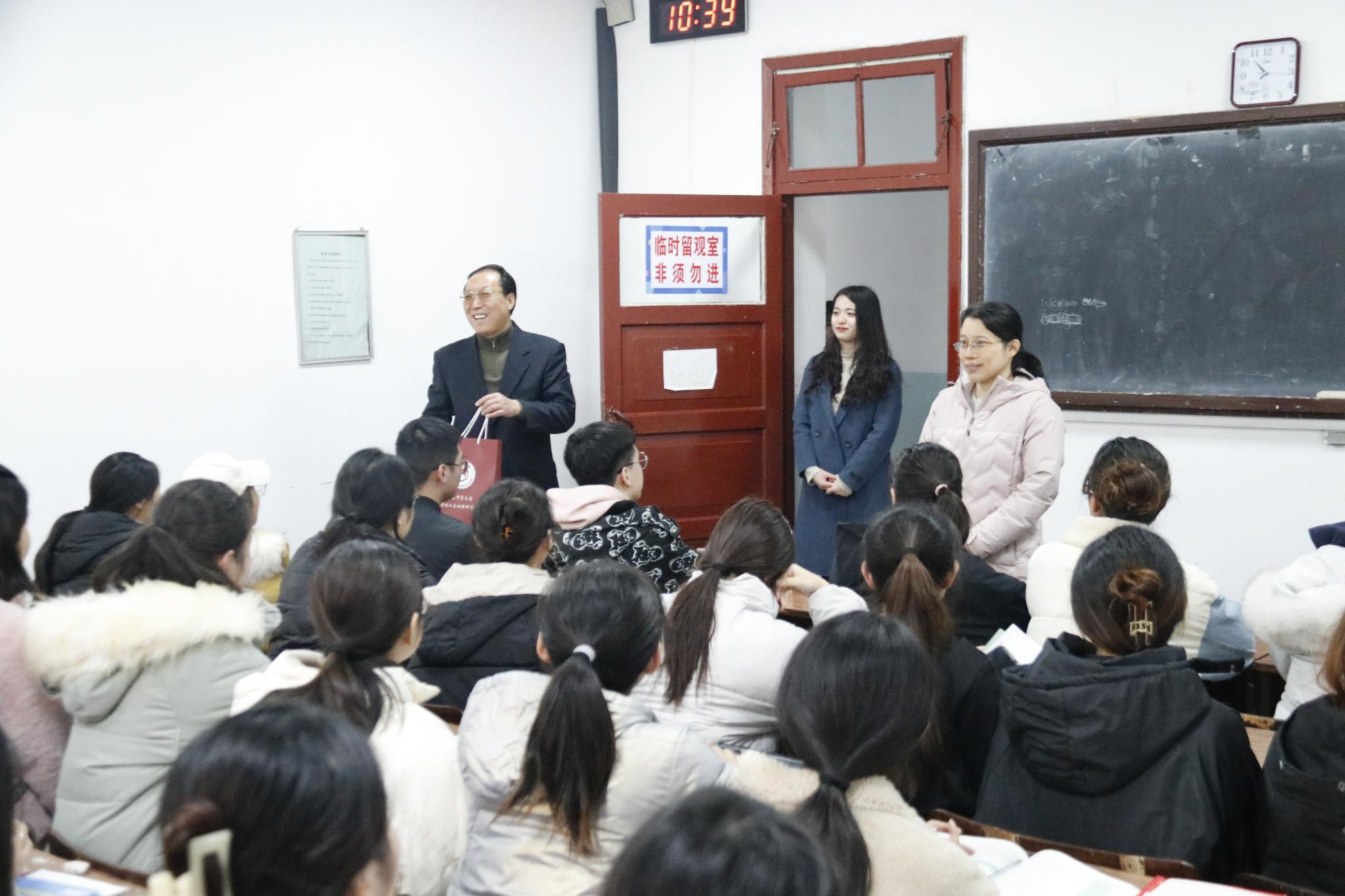 考研福袋中不仅装有富含美好寓意的小食品,还有口罩、暖宝和考研上岸卡。牛奶寓意“属你最牛”、橙子寓意“前程似锦”、苹果寓意“平步青云”、薯片寓意“属你最棒”、芝士蛋糕寓意“知识就是力量”、五颜六色的糖果寓意“锦鲤糖”,这些都是学院精心挑选并赋予特殊含义的暖心食品。口罩和暖宝宝,给考研路上的学子送上呵护与温暖。每一张考研上岸卡,分别由学院领导、辅导员、师弟师妹亲笔书写的对考研学子的衷心祝福。毕业班辅导员以慰问信的形式,以“韶华不止,奋斗不息”为主题,表达对备研考生的关怀与鼓励。历经一个月精心准备的考研福袋,充分体现了学院师生对考研学子的殷切希望和美好祝愿。为了让考生安心备考,学院领导老师亲自前往各班教室为学生送上考研福袋,这一幕让紧张备考的同学们备受感动!张同学表示“马上就要踏上考研战场了,在这个特殊的时候收到学院送来的福袋,心里真的暖暖的,很感谢大家”。在收到考研福袋之后,备研考生更是坚定了信念,表示在最后冲刺阶段定会坚持到底。