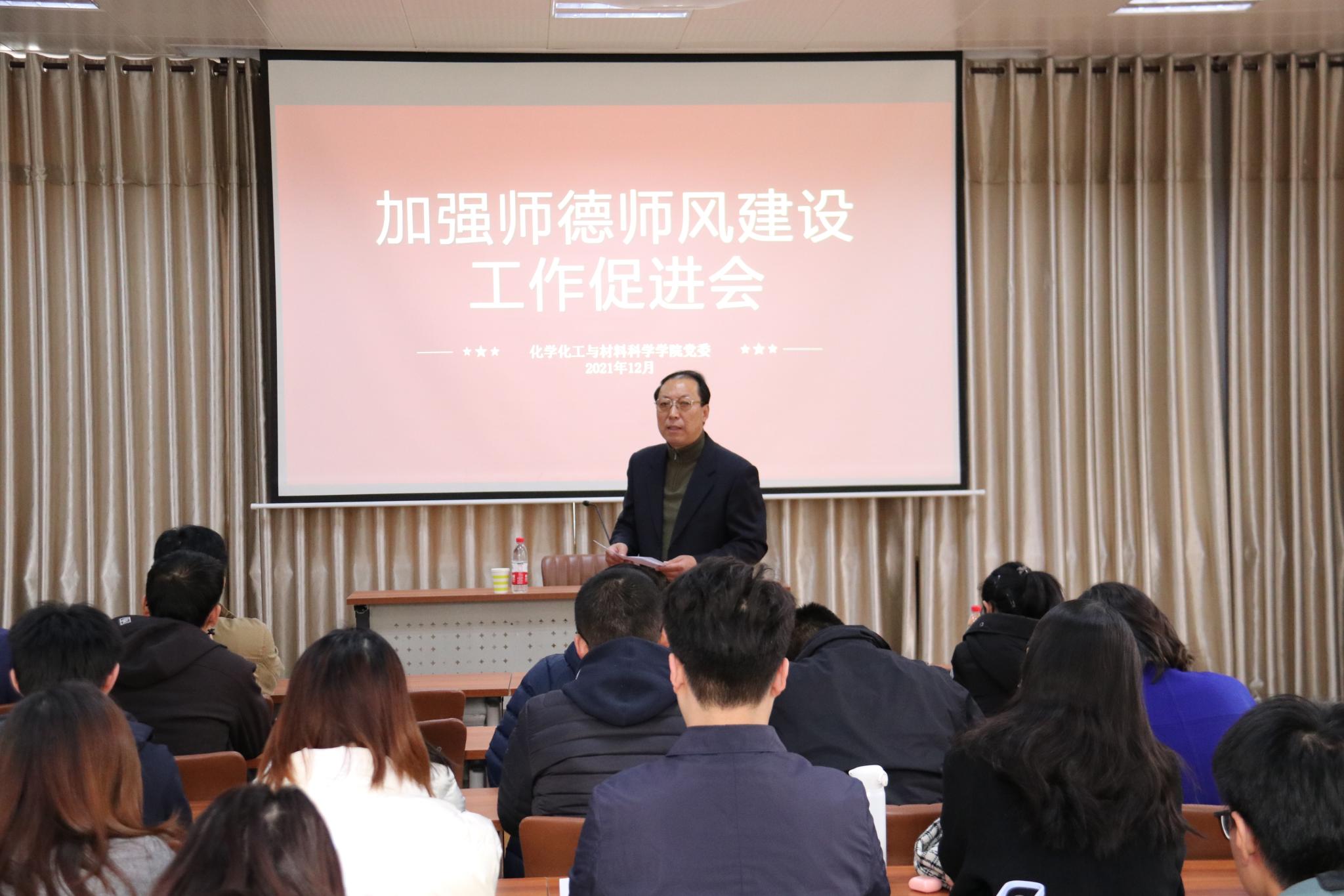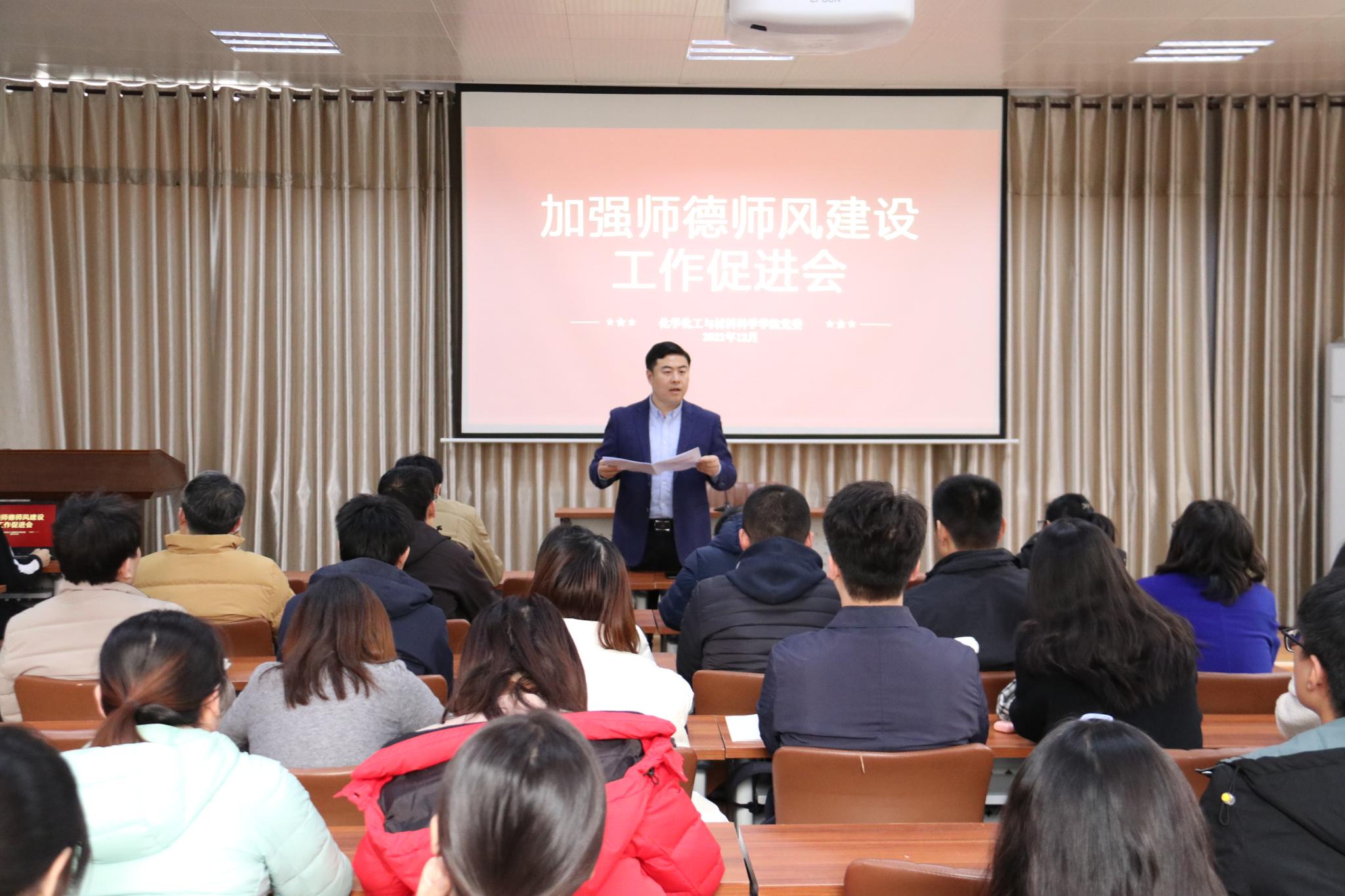 12月9日下午,化学化工与材料科学学院党委召开师德师风建设工作促进会。会上,学院党委书记王金山传达了《山东省教育厅关于开展师德师风警示教育的通知》精神并讲话,党委副书记孙南领学了《山东师范大学师德考核办法(试行)》和《山东师范大学师德失范行为处理办法(试行)》两个文件。