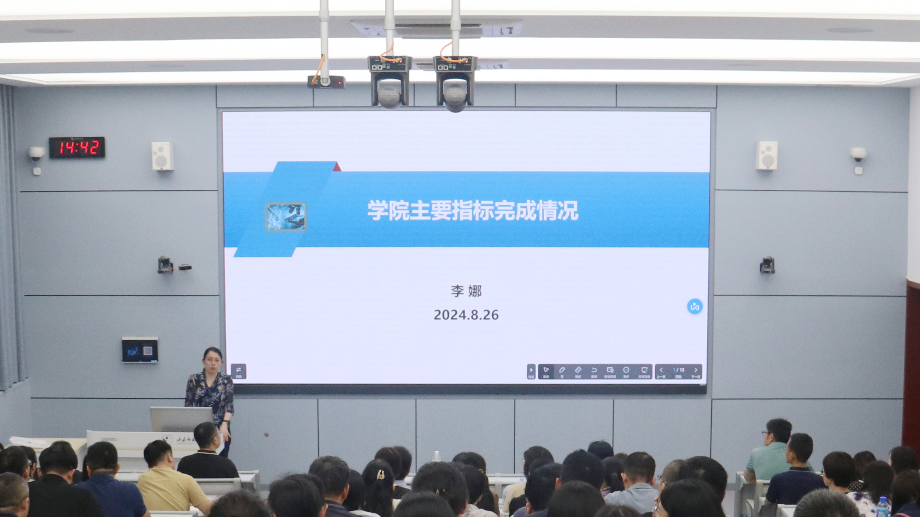 李娜从“811”项目学科指标完成情况、学校高质量发展核心指标完成情况和今后拟开展的重点工作等三个方面,对学院高质量发展主要指标完成情况进行了深入剖析解读。她指出,全院师生要高度重视、把准方向,聚焦指标任务,加快完成进度,在人才培养、平台建设、国际交流与合作、科学研究与社会服务等方面加大工作力度,进一步增强使命感和紧迫感,凝心聚力推动学科发展再上新台阶,在学校“冲一流”建设中实现新突破。