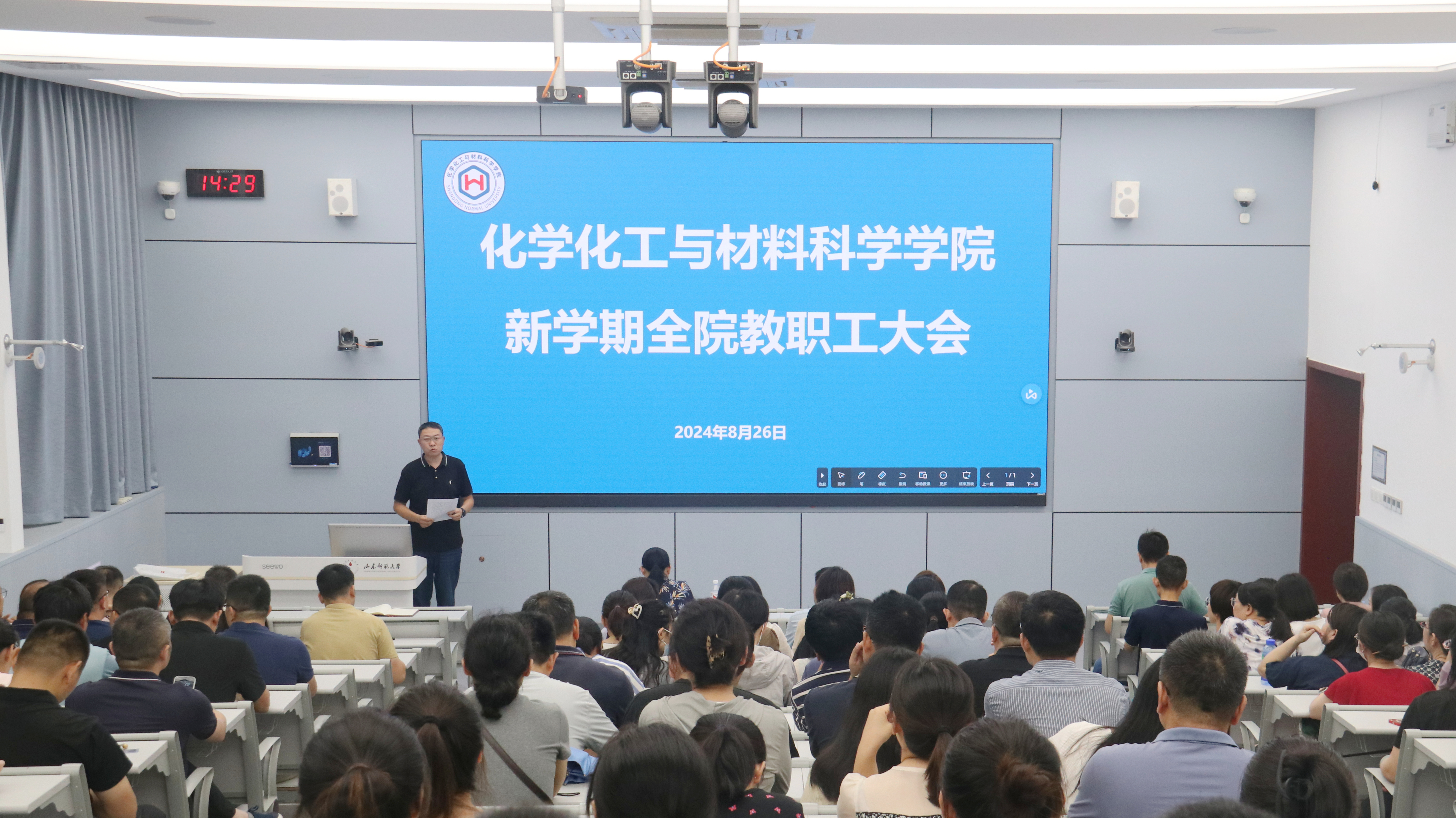 8月26日下午,化学化工与材料科学学院召开新学期全院教职工大会,传达学校关于学习贯彻党的二十届三中全会精神和高质量发展指标考核有关要求,安排部署新学期各项工作。副校长、学院院长李娜出席会议。学院领导班子成员及全院教职工参加会议。会议由学院党委书记赵巍主持。
