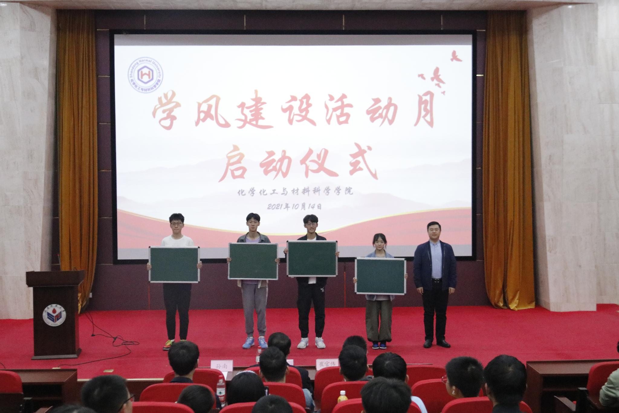 为贯彻落实党的十九届五中全会、全国高校思想政治工作会议等精神,加强学院学风建设,培养浓厚的学术氛围,实现内涵发展,10月14日,化学化工与材料科学学院于千佛山校区三号教学楼报告厅举办“笃志乐学,善思求新”学风建设活动月启动仪式,学院党委书记王金山、党委副书记孙南、副院长崔官伟、部分教师代表、辅导员以及各年级学生代表出席本次会议。会议由2020级辅导员梁菲函主持。