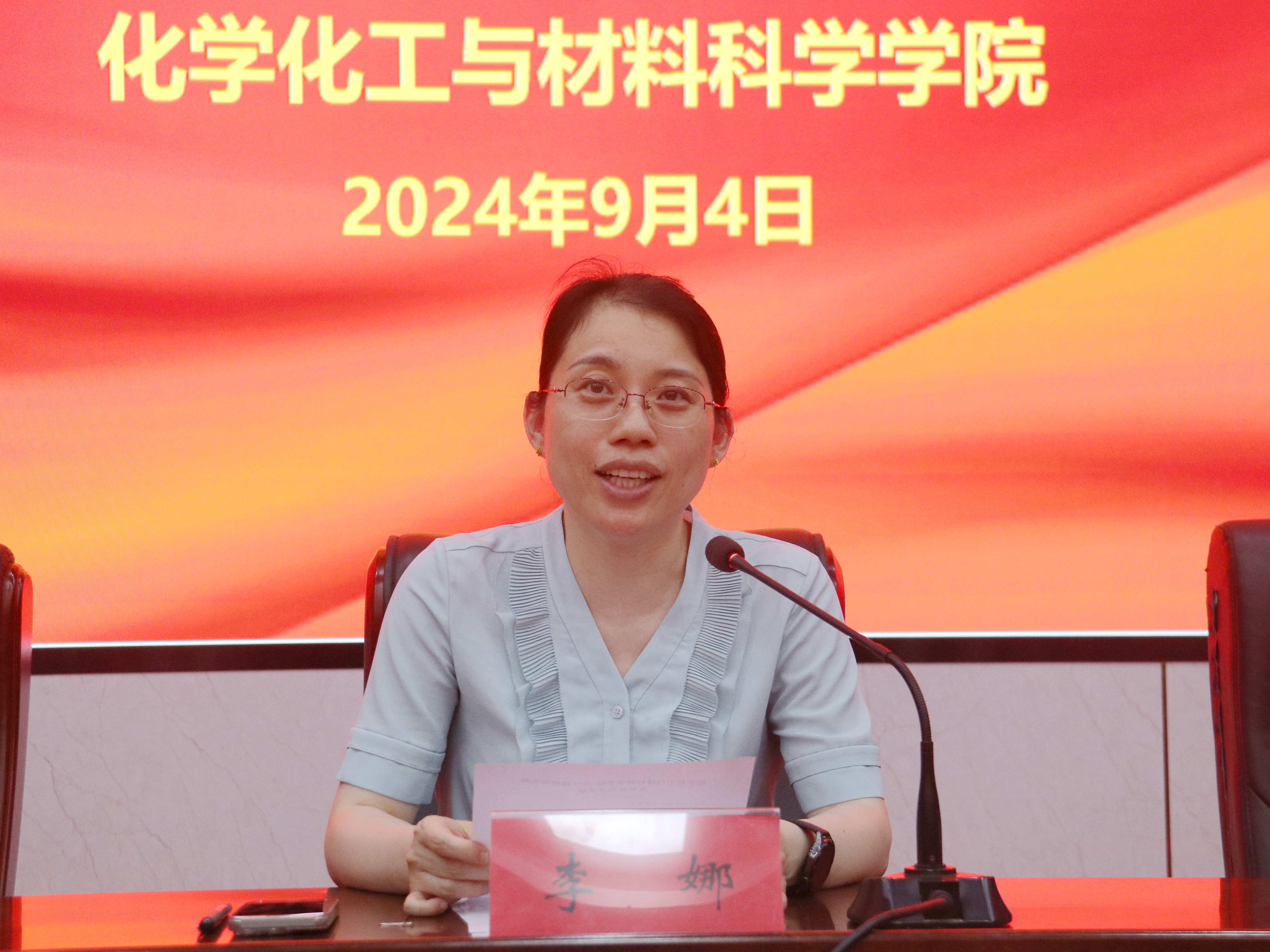 9月4日下午,化学化工与材料科学学院于千佛山校区教学三楼报告厅分别召开2024级本科生、研究生新生见面会。校党委常委、副校长,学院院长李娜出席会议并讲话。学院领导班子成员、系主任、教师代表、新生辅导员以及2024级新生参加会议。