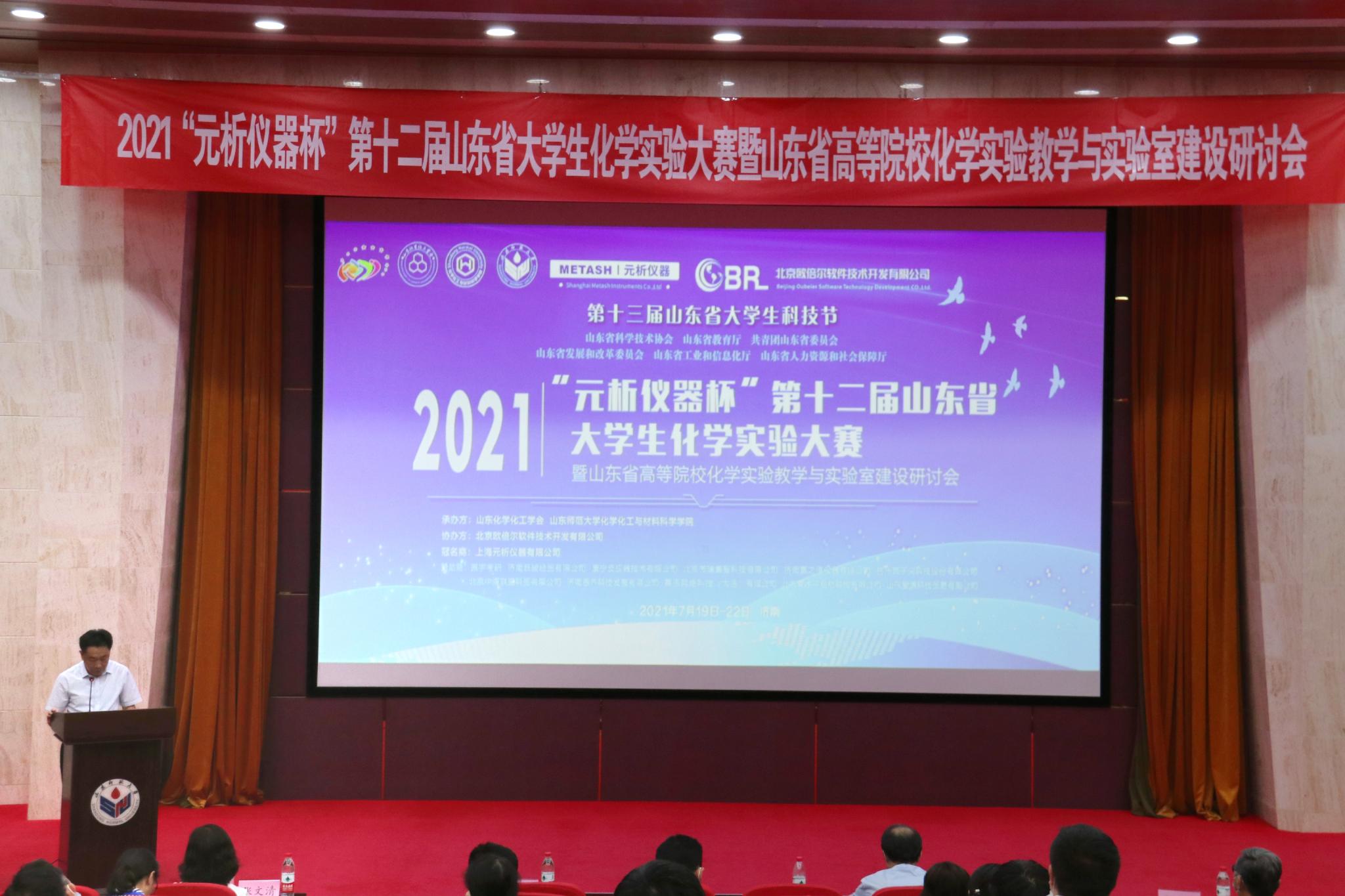 2021年7月19日至22日,2021“元析仪器杯”第十二届山东省大学生化学实验大赛暨山东省高等院校化学实验教学与实验室建设研讨会在山东师范大学千佛山校区举行。本次大赛是由山东省科学技术协会、山东省教育厅、共青团山东省委员会、山东省发展和改革委员会、山东省工业和信息化厅及山东省人力资源和社会保障厅联合主办的第十三届山东省大学生科技节系列活动之一,由山东化学化工学会和山东师范大学化学化工与材料科学学院联合承办。大连大学校长孟长功,山东师范大学副校长万光侠,山东大学教学促进与教师发展中心主任兼本科生院副院长张树永,华东理工大学化学与分子工程学院党委书记张文清,国家级实验教学示范中心主任联席会化学化工学科组组长、南京大学教授张剑荣,厦门大学国家级化学实验教学示范中心主任任艳平等专家学者出席。