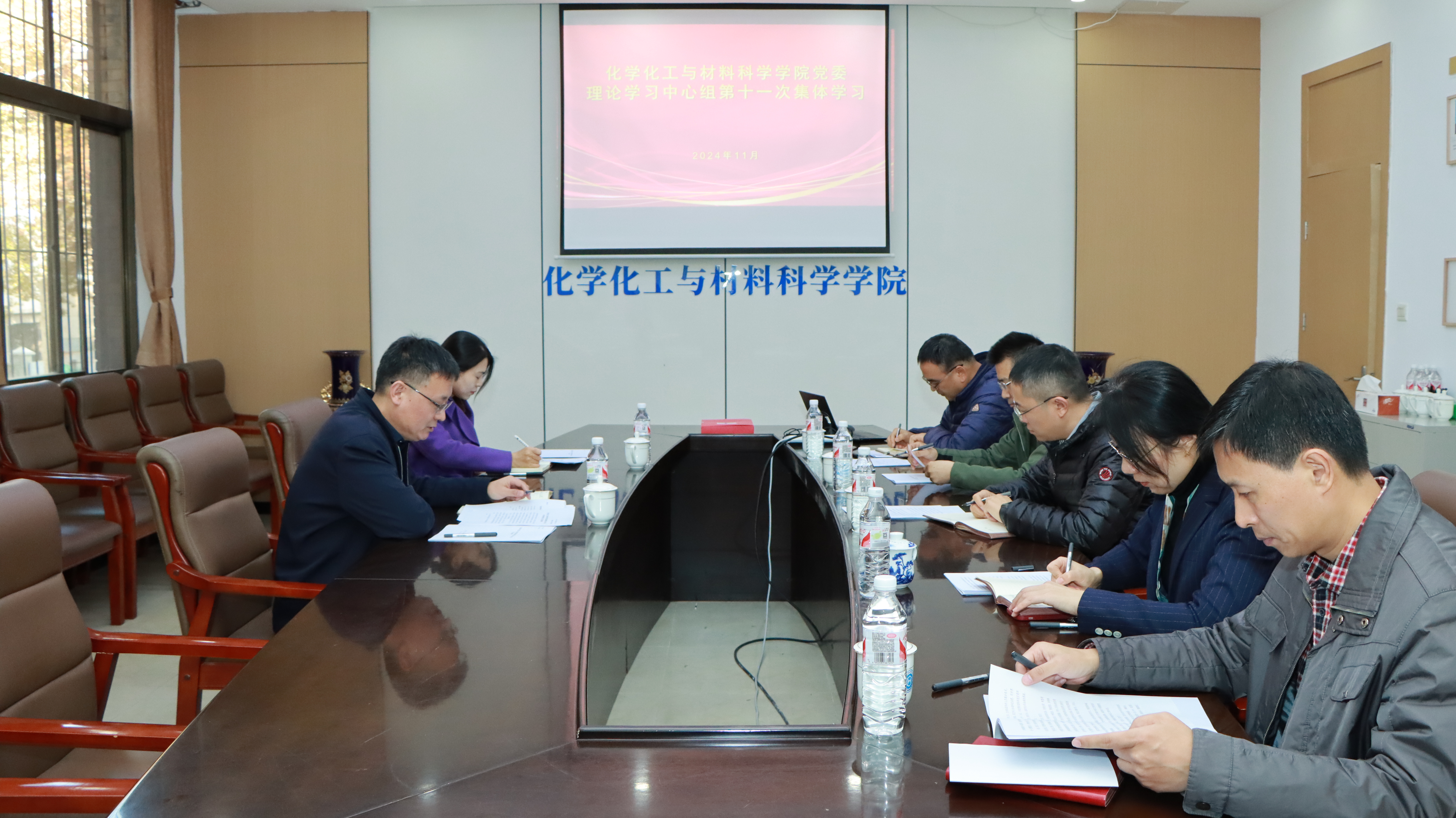 11月21日,化学化工与材料科学学院党委理论学习中心组在千佛山校区一号教学楼1246会议室开展集体学习。学校党委列席旁听第十工作组组长、校党委常委、组织部部长魏学江,工作组成员、校党委宣传部新媒体中心主任张莹列席旁听。学院党委理论学习中心组成员参加集体学习。会议由学院党委书记赵巍主持。