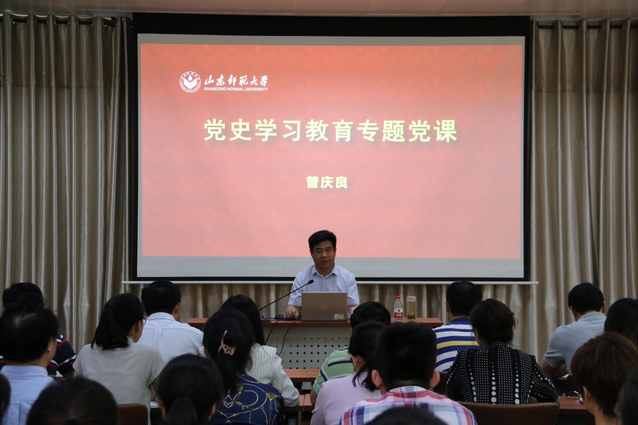 6月10日下午,校长曾庆良走进千佛山校区课堂,以“从党史中汲取奋进力量”为题,为学院全体教职工党员讲党课。