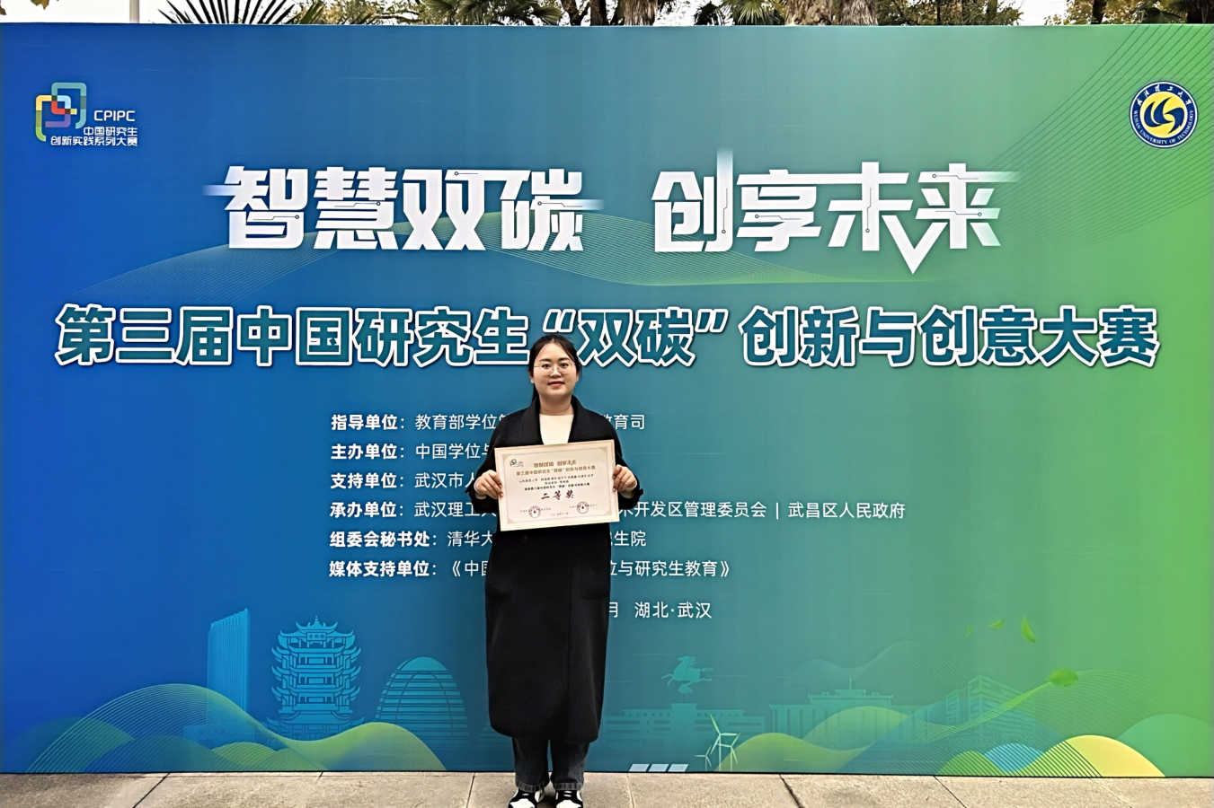 11月24日,第三届中国研究生“双碳”创新与创意大赛决赛在武汉理工大学圆满落幕。由化学化工与材料科学学院贾恒磊副教授指导,杨圆圆等研究生完成的项目《绿色双碳路线—新型纳米材料的高效电催化还原CO2和光催化产氨新技术》荣获全国二等奖。此外,该项目在本年度“秦创原-中石协·宝石机械杯”第十一届中国研究生能源装备创新设计大赛中还荣获三等奖。