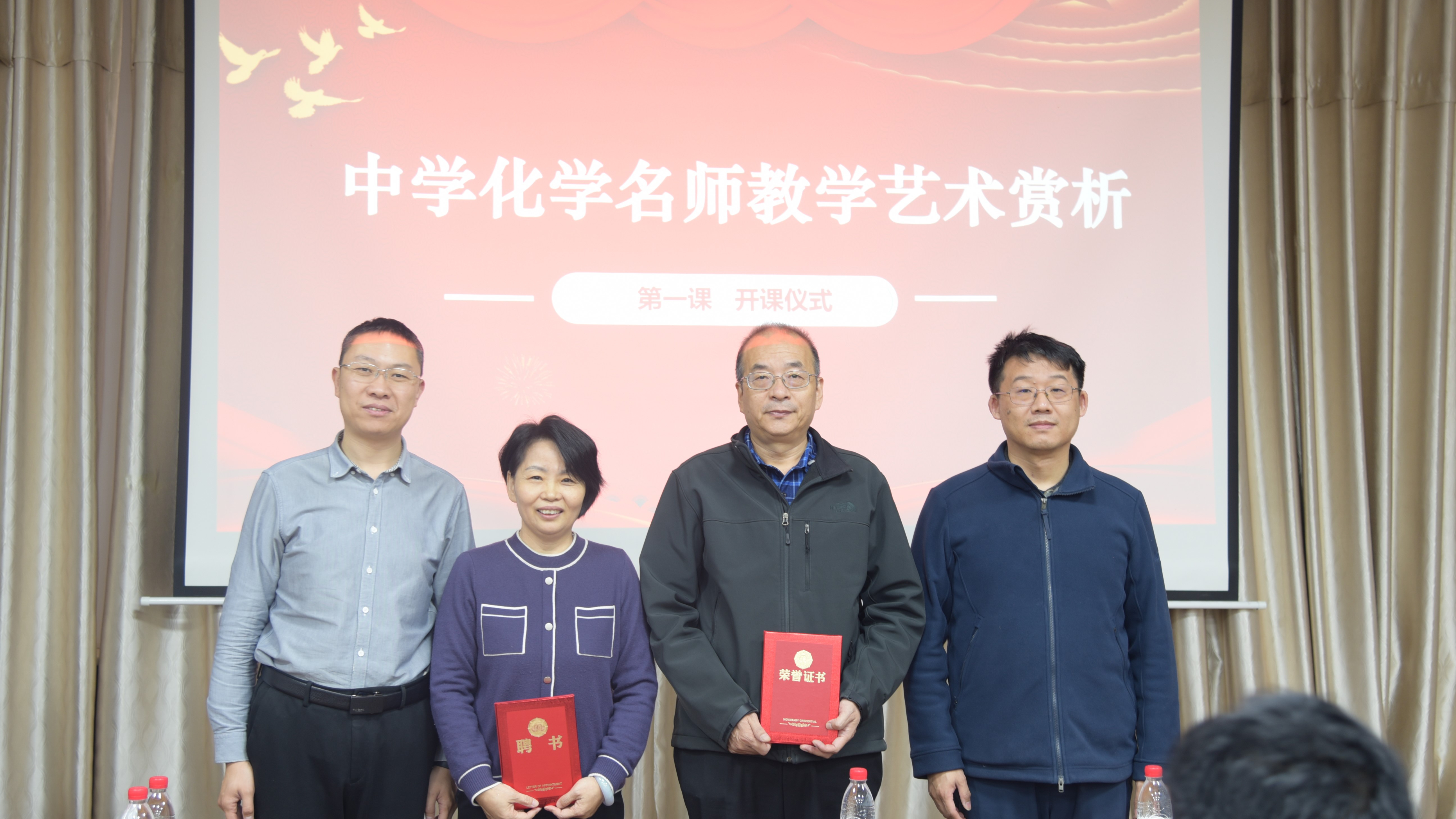 赵巍代表学院对卢巍和王笃年的到来表示欢迎,向两位专家长期以来对化学院各项工作的支持表示感谢。他指出,学院要充分把握《中学化学名师教学艺术赏析》课程的契机,邀请教学名师授业解惑、传经送宝,为学院师范生的教育培养提供宝贵经验,争取为加强教师队伍建设和教育强国建设作出新贡献。开课仪式上,赵巍和耿琰分别为卢巍、王笃年颁发主讲教师聘书和荣誉证书。
