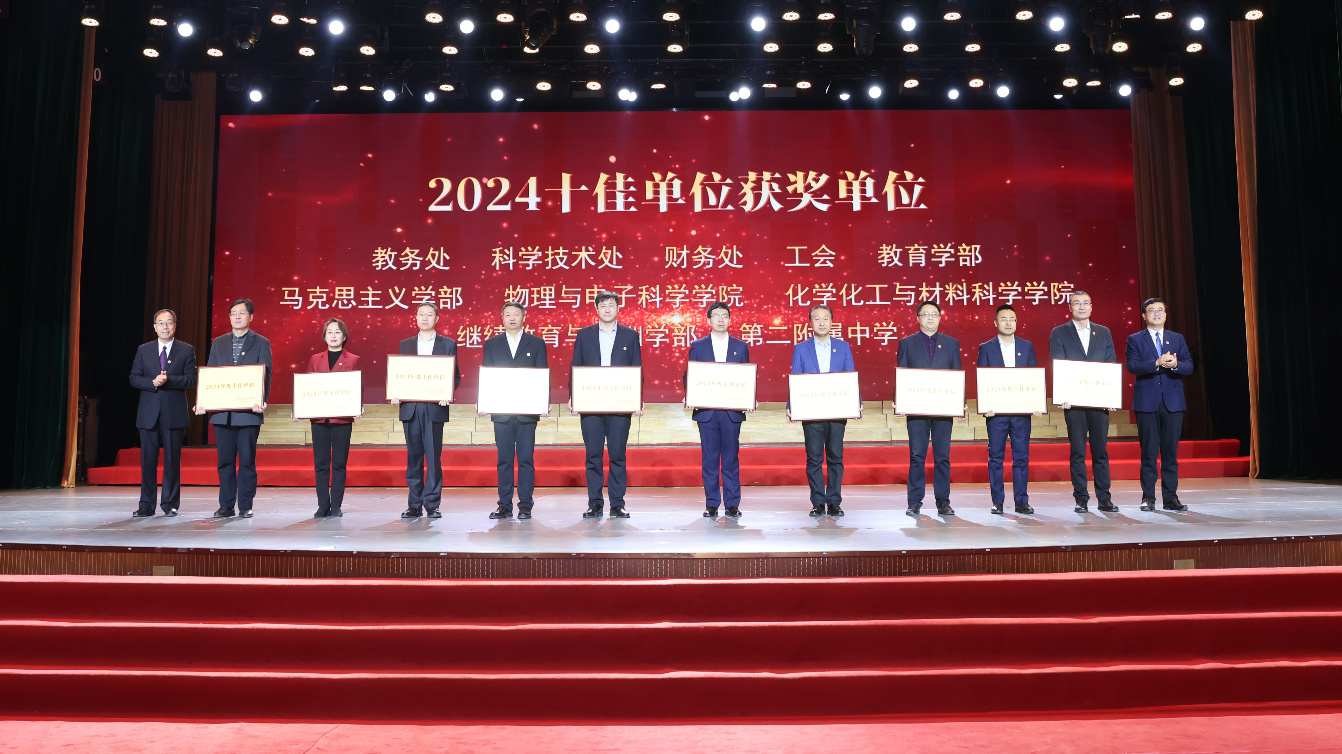 1月11日上午,学校2024年度表彰大会在千佛山校区大礼堂隆重举行,化学化工与材料科学学院荣获2024年度十佳单位和高质量发展杰出贡献奖。