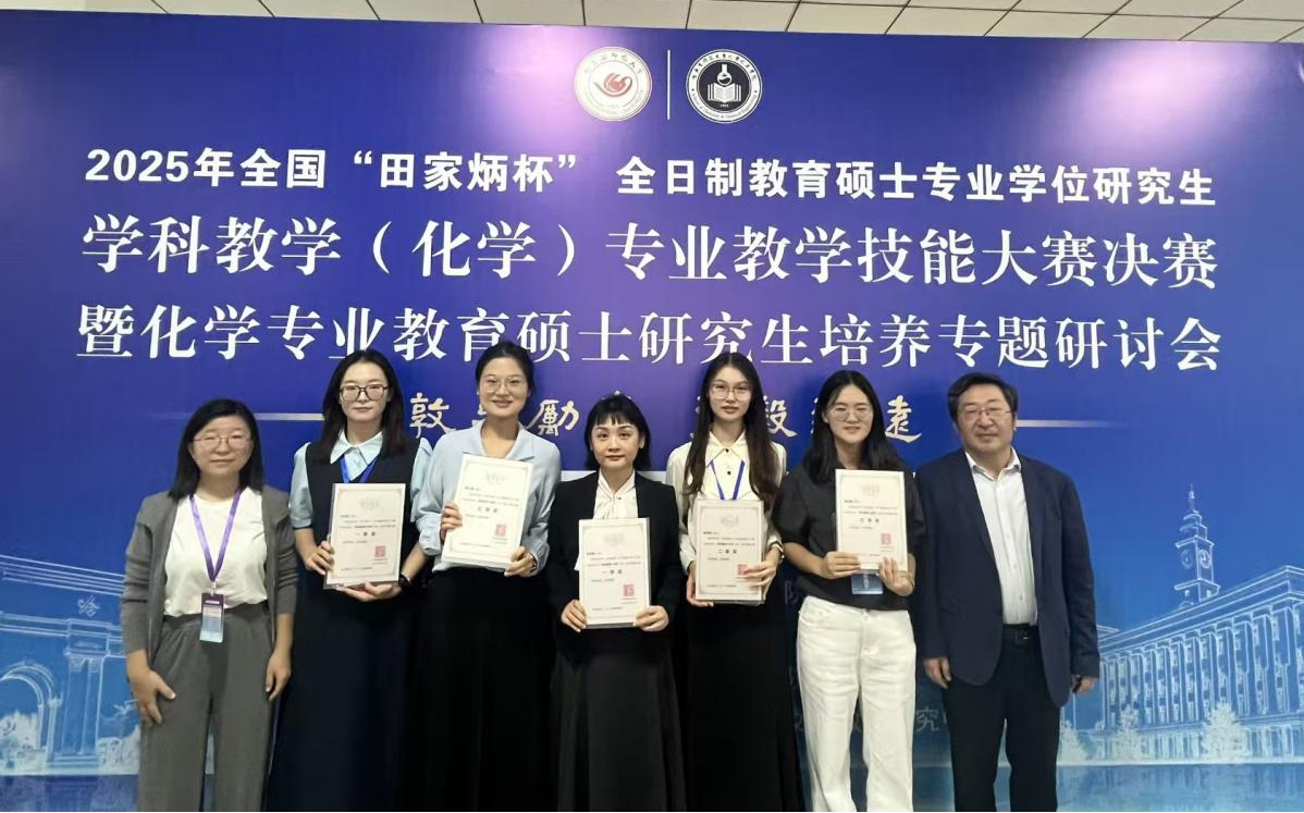 9月26日至28日,2025年全国“田家炳杯”全日制教育硕士专业学位研究生学科教学(化学)专业教学技能大赛决赛在哈尔滨师范大学举行,我院学子在比赛中表现优异,荣获一等奖2项、二等奖1项、三等奖2项,其中张阳杨、牛可欣荣获一等奖,薛依诺荣获二等奖,李亚静、陈心如荣获三等奖,指导教师贾梦英、姜言霞、卢姗姗荣获优秀指导教师奖。