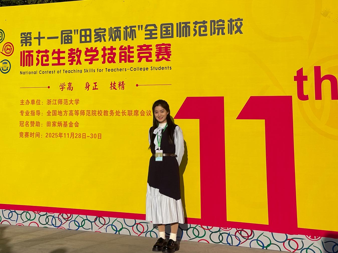 11月29日至30日,由田家炳基金会赞助、全国地方高等师范院校教务处长联席会主办、浙江师范大学承办的第十一届“田家炳杯”全国师范院校师范生教学技能竞赛决赛在浙江省金华市举行,由我院亓英丽老师指导的2022级卓化班马琳斩获化学组一等奖。