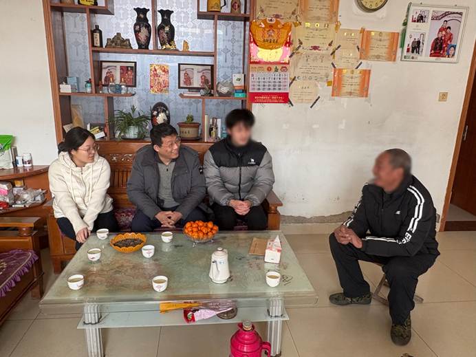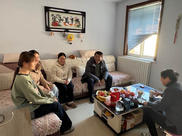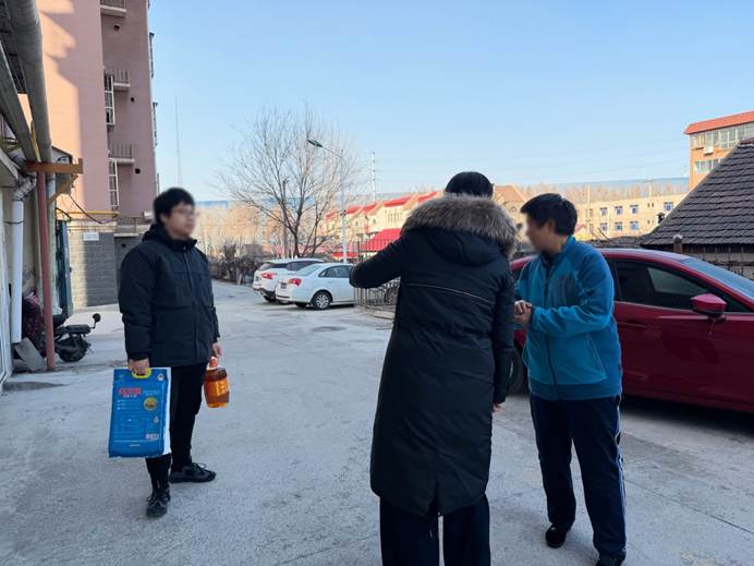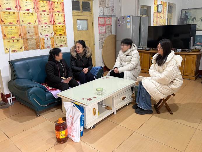 走访期间,学院领导与教师深入学生家庭,与家长亲切交谈,细致了解学生家庭经济状况与实际需求,并向家长转达学校的诚挚问候。通过面对面交流、家常式沟通、需求化对接,学院进一步拉近了家校距离,同时向家长反馈学生在校学习表现与成长情况,解答家长关切,增进家长对学校教育、管理及资助工作的理解与认同。学院送上学校慰问金及精心准备的米、面、油等生活物资,在寒冬时节为受访家庭送去温暖。