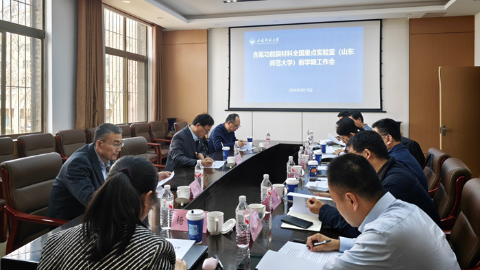 3月19日下午,含氟功能膜材料全国重点实验室(山东师范大学)(简称“山师全重”)新学期工作会在千佛山校区召开。校长张建,副校长蔡阳健,副校长、山师全重主任李娜出席会议。科学技术处、学院相关负责同志及实验室学术骨干参加座谈。