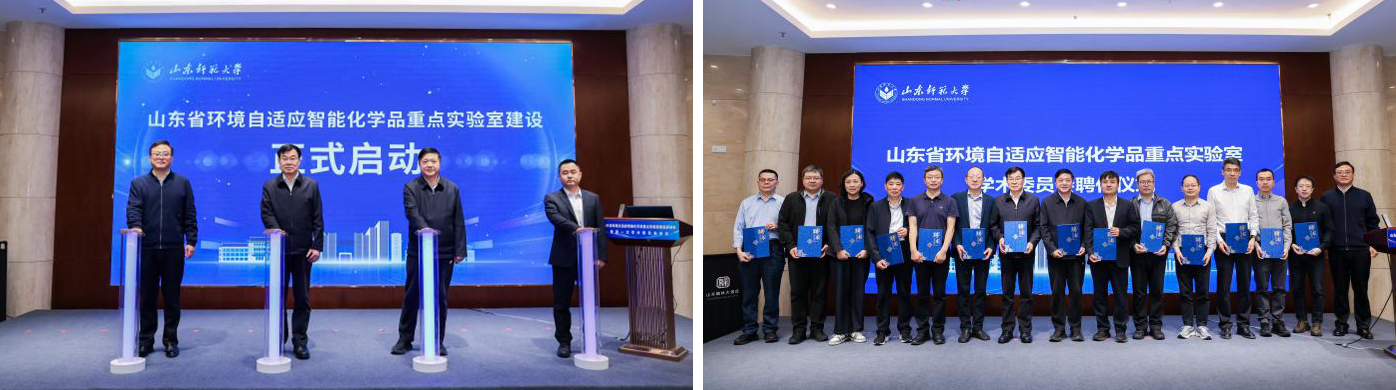 会上举行了山东省环境自适应智能化学品重点实验室启动仪式,刘维民,唐波,张建,淄博齐翔腾达化工股份有限公司总工程师、党委委员、副总经理张春峰共同上台按下启动柱,标志着实验室正式启动运行;随后举行了学术委员会委员聘任仪式,张建为学术委员会委员颁发聘任证书。