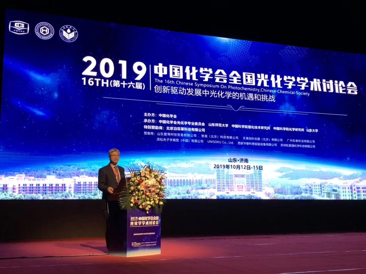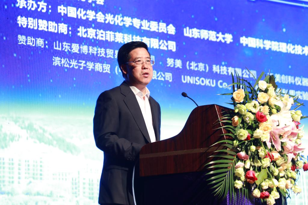 10月13日上午,由中国化学会主办,中国化学会光化学专业委员会、山东师范大学、中国科学院理化技术研究所等单位承办的第十六届中国化学会全国光化学学术讨论会在山东济南历山剧院隆重开幕。大会名誉主席、学术委员会主任、中国科学院理化技术研究所研究员、中国科学院院士佟振合,中国科学院院士、香港科技大学教授唐本忠,中国科学院院士、北京师范大学教授方维海,中国化学会光化学专业委员会主任、中国科学院理化技术研究所副所长汪鹏飞,陕西师范大学教授房喻,香港城市大学教授李振声,中国科学院大学副校长杨国强,中国科学院理化技术研究所研究员吴骊珠,华中科技大学副校长解孝林,山东省外国专家局局长张祝秀,山东师范大学副校长王传奎出席开幕式。来自133所国内外高校和科研院所的六百多名师生参加了本次会议。会前,王传奎代表山东师范大学会见了出席本次大会的专家、学者代表。开幕式由中国科学院理化技术研究所研究员王雪松主持。