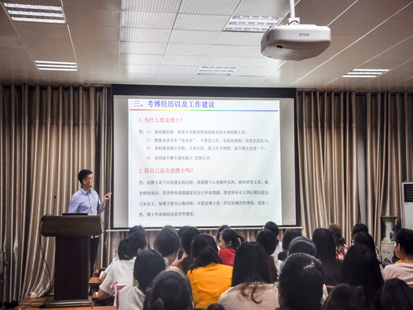 王新燕主要从文献、选题、设计、论证等七个角度详细讲述了科学研究的全过程,在每个方面都给了师弟师妹们详细的建议。最后,王新燕讲述了自己在自己未来道路上的迷茫期,告诫大家应明确自己想要什么,进而尽早确立目标,机会是留给有准备的人。