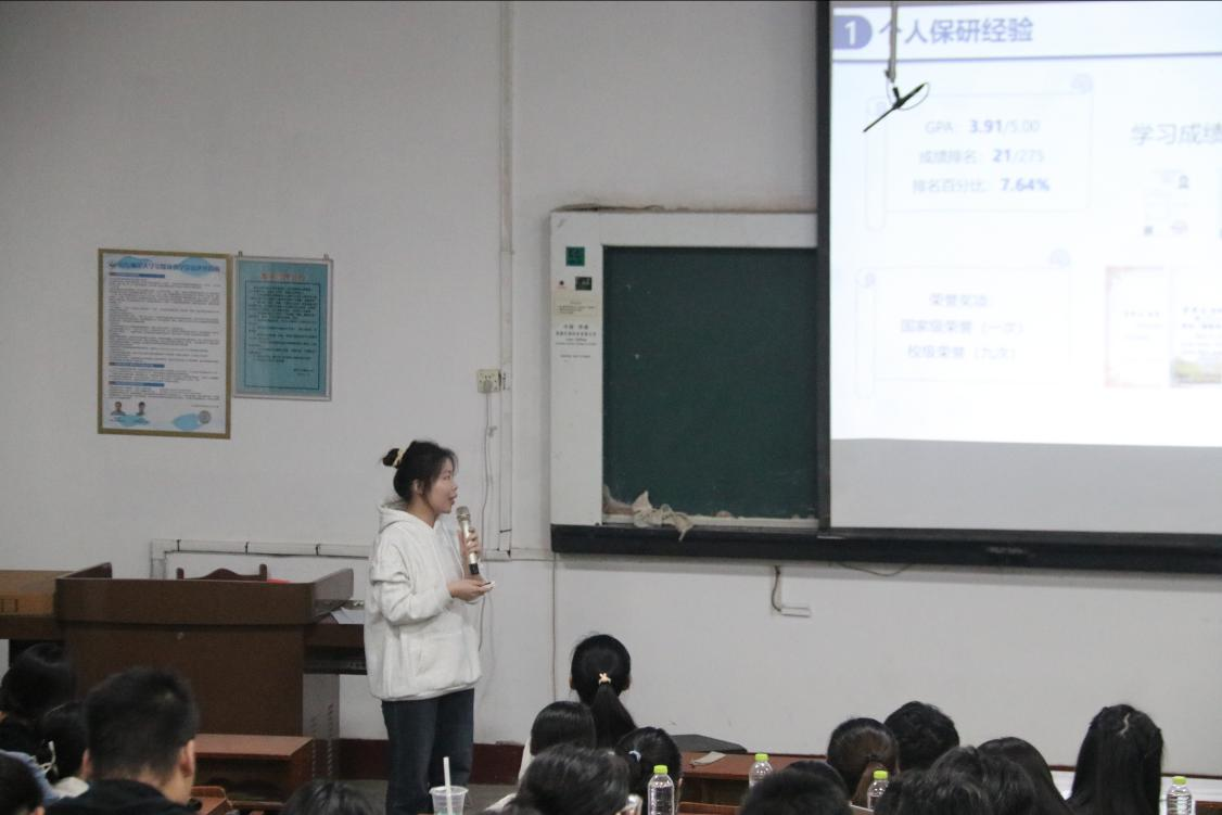 会议伊始,推免至山东师范大学的陈心如向大家进行保研经验分享,介绍了“卓越教师计划”以及关于保研的建议,增强了大家对保研的了解。随后推免至复旦大学的王一凡介绍了自己的保研过程,详细地为大家讲解了参与各学校夏令营的流程及总结,让大家对其有清晰的了解;推免至北京师范大学的王丹阳以个人保研准备始,分享了保研学校和导师的选择以及科研和竞赛建议。随后徐小晰、李淑桦、高雯、薛雅婷、宫梦凡、崔文萱分别从保研准备、面试技巧、保研考核、保研建议和个人经历五大方面进行分享,充分帮助同学们答疑解惑。师姐们的倾囊相授,让同学们受益匪浅,增强了同学们的自信,对未来规划有了更清晰的认知。