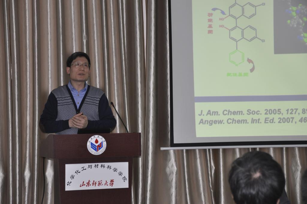 12月28日,应科技处、化学化工与材料科学学院邀请,国家杰出青年基金获得者、浙江大学教授、我校化学系88级校友吴传德教授,在千佛山校区教学一楼1201学术报告室作了题为“仿生框架材料的结构设计与催化性质”的学术报告。报告会由化学化工与材料科学学院党委书记王金山主持,化学院部分师生聆听了报告。