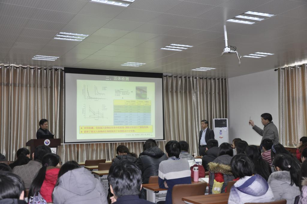 报告伊始,欧阳钢锋教授首先对山东师大建校65周年表示了衷心的祝贺,并表达了对师大学子的亲切问候。报告中,欧阳教授主要从新型SPME探针的制备与应用、活体采样分析技术两方面阐述了其在固相微萃取探针研制与活体检测领域的探索。在探针的研究中,欧阳教授的团队开发了MIL 101(Cr)探针、有序多空聚合物、PSS/PDMS活体检测探针等一系列新型探针应用于仪器的检测分析;在活体采样方面,则对鱼、芥菜等动植物进行创新性探索,实现了对鱼脑部氟西汀及其代谢产物去氟西汀、芦荟中人造麝香进行了活体跟踪检测。报告结束,欧阳教授耐心回答了老师与同学们提出的问题。本场报告是庆祝建校65周年系列报告,老师和同学们纷纷表示获益匪浅。