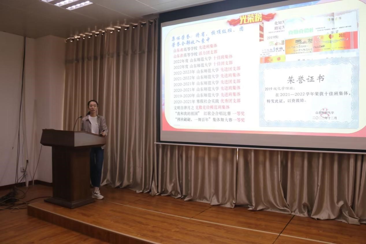 为充分发挥团员在团支部的引领作用,加强团支部的文化建设,5月25日中午,化学化工与材料科学学院韶华团校于1201报告厅开展“团支部的文化建设”主题团课。本次团课由2019级化学四班团支书任楚彤为学员们讲授。