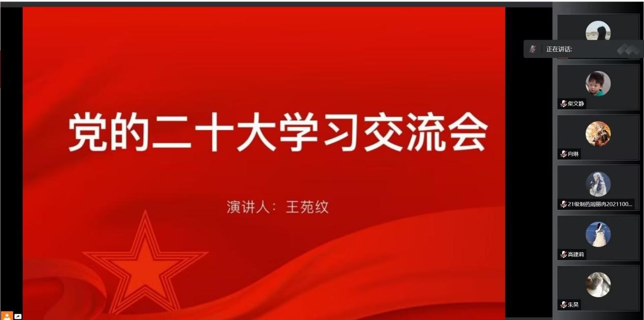 为更好地学习领会党的二十大精神,推动中国式现代化理念深入人心、指导实践,11月22日,化学化工与材料科学学院韶华团校举办党的二十大学习交流会。本次会议以线上的形式召开,由院团员自我管理委员会组织部部长王苑纹主讲。