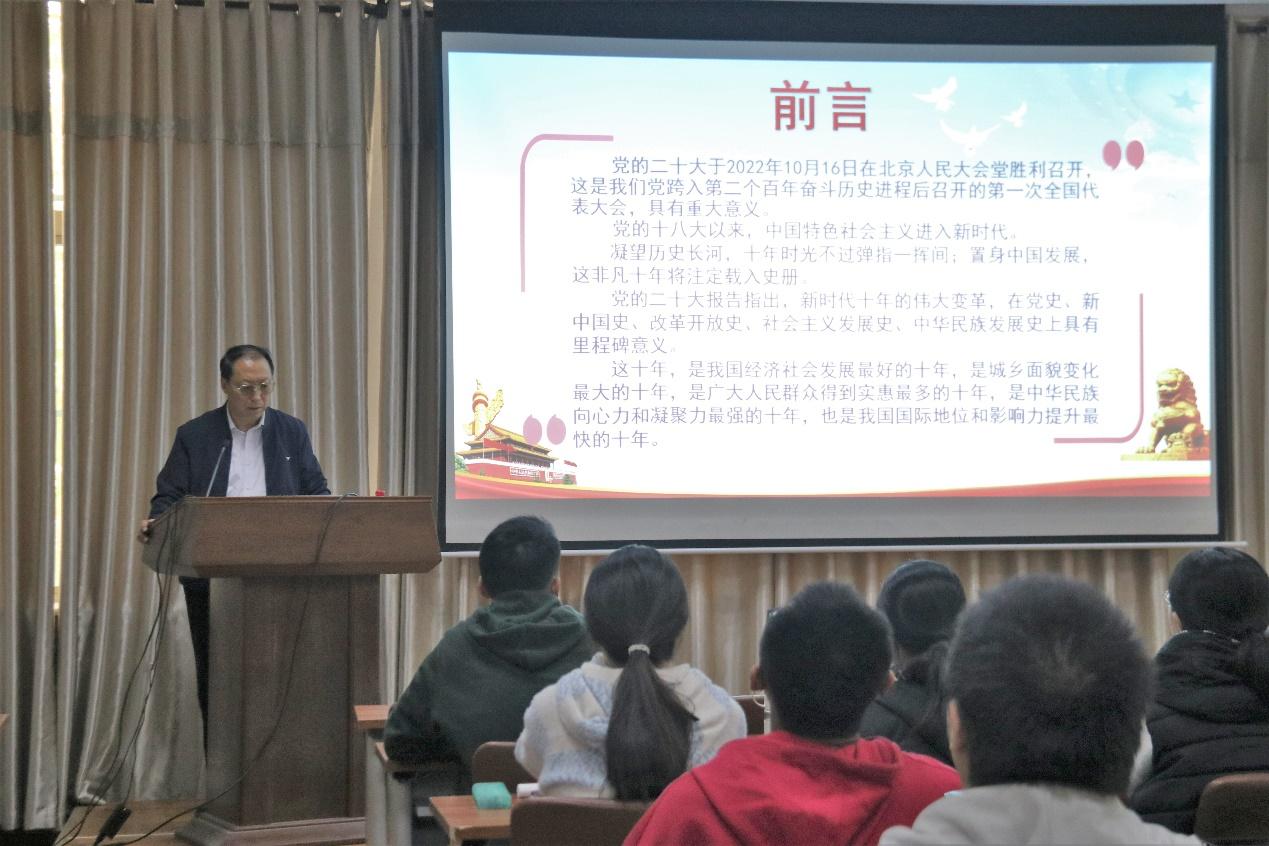 10日,孙南就“新时代的伟大成就”这一内容展开开班第一课,从经济实力、产业结构、科技创新及全面小康四个方面进行详细讲解,为迎接党的二十大做好思想准备。13日,孙朝阳围绕党员发展入党流程,以入党流程的“五大环节、二十五个步骤”为时间线,介绍入党的条件及程序,深入浅出地为大家讲解党的基本知识中常见误区。20日,为庆祝中国共产党第二十次全国代表大会胜利召开,王金山带领学员学习习近平总书记代表第十九届中央委员会所作报告的部分内容,围绕新时代十年的伟大变革,阐述党的十八大以来党和国家事业取得的历史性成就、发生的历史性变革,着重强调我国国际认可度、影响力的提升以及经济社会发展的伟大成就,论述其根本是马克思主义强大生命力的中国彰显,要坚定“归根到底是马克思主义行,是中国化时代化的马克思主义行”的理想信念。