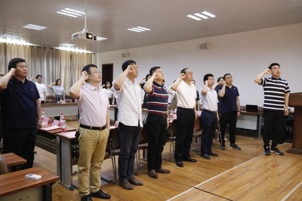 活动最后,学院全体领导与毕业生党员共同重温入党誓词,回顾入党初心,并在实验楼前合影留念。通过本次活动师生共交流、齐宣誓,师生间关系不断拉近,将毕业生党员离校教育工作推上一个新台阶,为毕业生的山师生活画上一个圆满的句号。