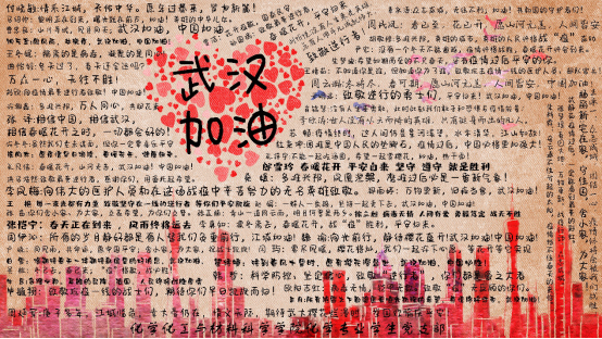 “力所能及”是这个环节出现频率最高的词语,学生党员纷纷表示自己虽然没有机会在前线与病毒抗争,但一定会为疫情防控工作尽自己所能,贡献微小力量。活动最后,周民凤给党支部全体学生党员提出恳切建议,呼吁大家及时确定考研、就业目标,同时坚定信念、放平心态、抓住机会、迎接挑战,在特殊背景下利用居家时间提升自己,更好地完成预定目标,同时展示了以支部各学生党员的祝福语组成的海报,共同祝愿疫情早日平息。