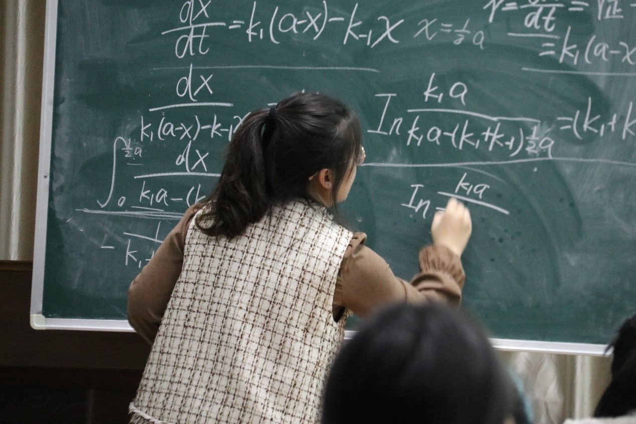 本次教学课程由李晶晶主讲,授课内容为《化学动力学基础(一)》,活动分为课堂展示和课后研讨两个环节。她悉心准备教学内容,精心设计课堂环节,制作教学课件,通过课堂讲授与师生互动,循循善诱,重点突出,层次分明,为同学们讲授化学反应速率的表示法以及速率方程的微分式的定积分和不定积分运算,为学生提供了清晰、全面与富有启发性的教学指导,师生互动良好,课堂气氛活跃,给现场观众留下深刻印象。最后教师总结本节课学习内容并布置好预习内容。听课期间,各位老师记录学生们的学习情况,总结教师授课的优点和问题。