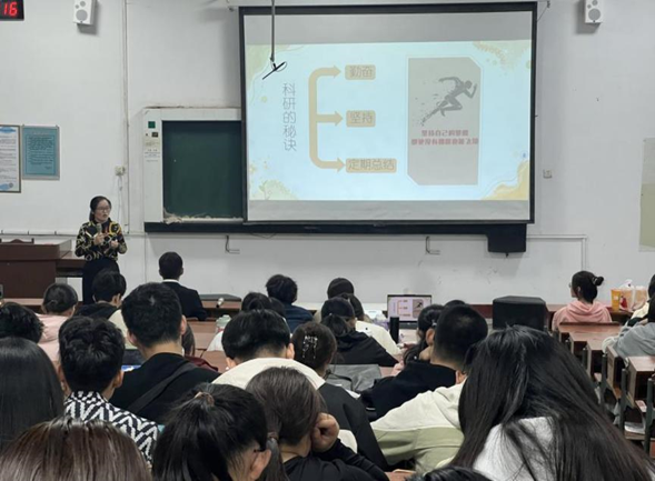 活动中,李艳华从科研介绍和经验指导两方面进行讲解,通过分享自己的人生经历、求学历程、学术经验等为同学提供借鉴,同时借此切实地说明了科研道路光明的前途和发展前景,接下来,李艳华从面试技巧、心理疏导和大学生活三个方面分享经验。在学习上,李艳华建议同学们实施框架式学习和重点回顾,形成课前预习、理论实践相结合、课后复习总结的良性循环。面对同学们关注的考研问题,李艳华分享在备考和复试时遇到的问题及解决方法,加强了同学们对于考研的认识,使其未来发展有更清晰的定位。