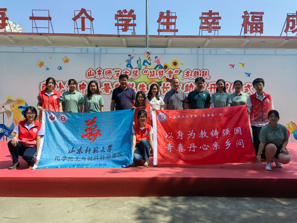 为全面提高农村地区学生综合素质,增强其品德修养,加强其思想文化建设,促进城乡教育资源的均衡发展,山东师范大学化学化工与材料科学学院“筑梦者”队于2023年7月6日至7月21日到滕州市南沙河中学展开以“受教育、长才干、做贡献”为宗旨的支教实践与实地调研活动。