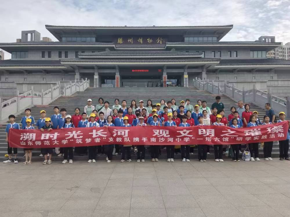 支教期间,“筑梦者”队带领南沙河镇中心中学的营员们于滕州市“一塔六馆”博物馆群进行“溯时光长河,观文明之璀璨”研学活动。本次“一塔六馆”研学活动引导学生走出学校教室,体悟家乡丰厚历史韵味、文化底蕴,给同学们带来了全新的感受,引导同学们做新时代新青年。