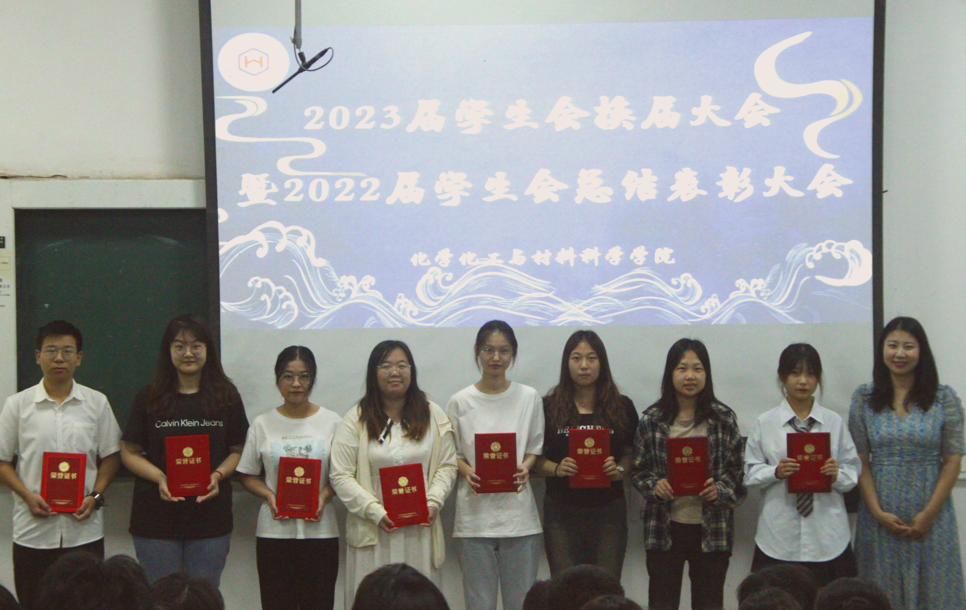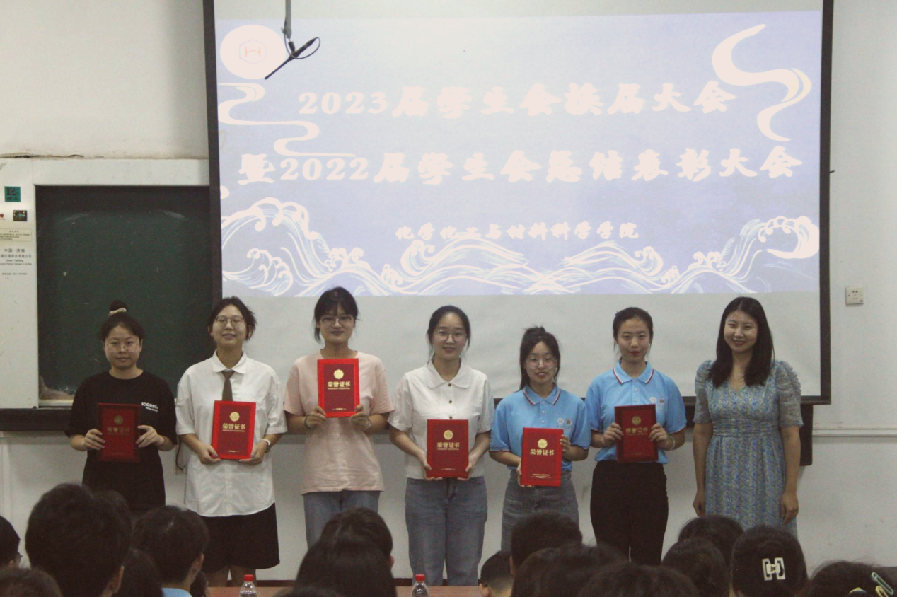 会议伊始,2022届团员自我管理委员会兼团委副书记杜一帆和学生会主席崔文萱分别上台发言。她们对上一学年的学生会工作情况进行总结汇报,并对新一届学生会成员提出了几点要求与建议,希望他们可以不忘初心,明确责任,处理好学习与工作的关系,提高自身综合素质,创新工作方法,更好地担当使命。随后,张书沂老师为2022届表现优异的学生会代表颁发证书并合影留念。