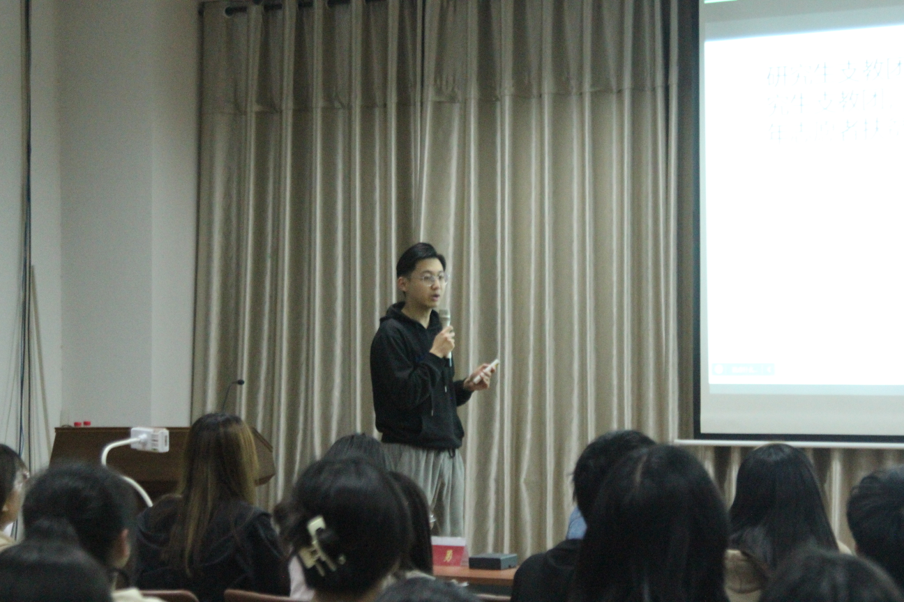 为帮助同学们对自身规划有更明确的认知,师哥师姐们倾囊相授。崔勇师哥向我们解释了什么是研究生支教团,介绍了研究生支教团的加入条件、加入流程以及加入益处,并为想要加入支教团的同学提出了建议。陈家琪师姐向我们详细介绍了保研条件,并针对就业方面的问题和我们分享了经验,提供了许多宝贵的建议。