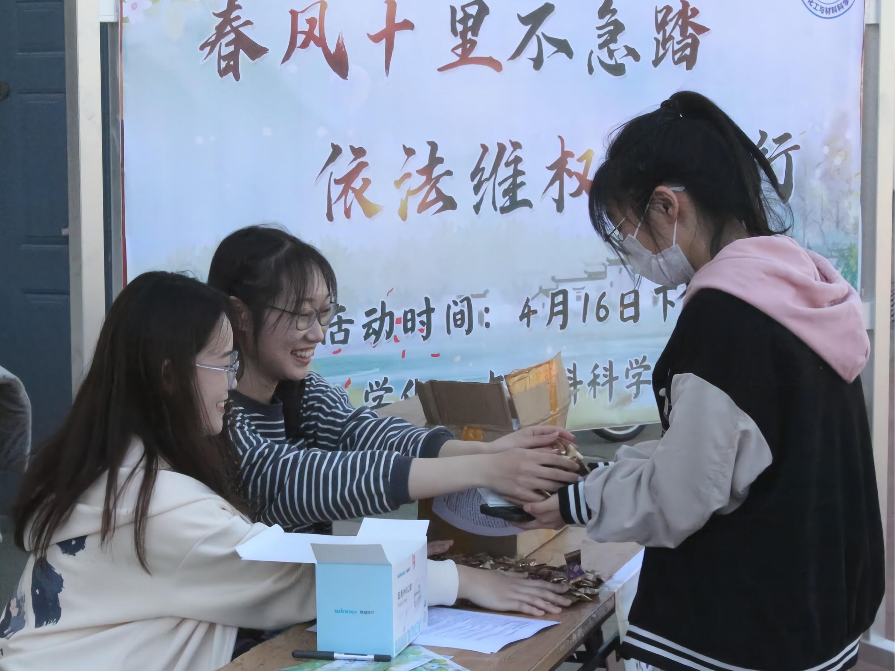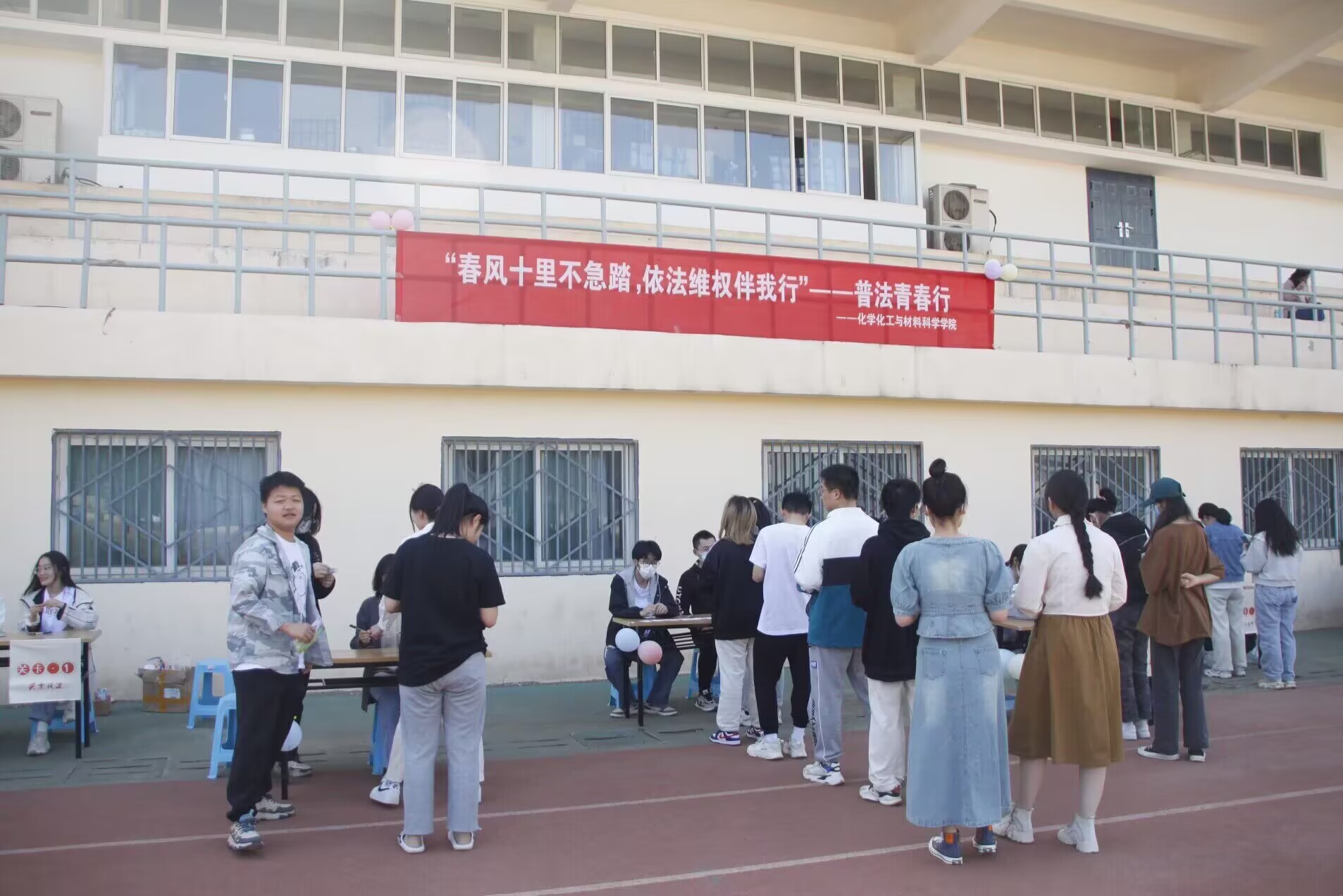 为引导大学生树立正确的法治观念和法律意识,结合“五一出行”场景,化学化工与材料科学学院纪检部于4月16日在千佛山校区田径场举办“春风十里不急踏,依法维权伴我行”普法主题活动,进一步提高同学们在出行中的自我保护意识。