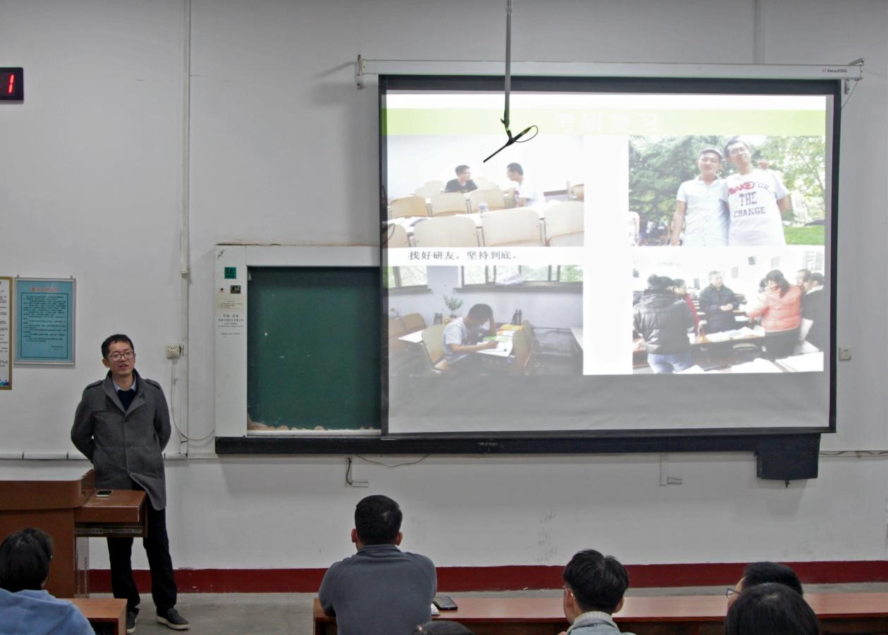 会议伊始,周长富首先介绍了本次会议的目的和意义,并鼓励同学们积极发言。接着,张振宇从大学、考研与读研和社会经历等方面进行分享。在交友方面,他感叹和同学、师弟师妹培养的深厚感情是其人生宝贵的财富,强调在大学期间要重视人际交往。面对和同学的摩擦,吃亏是福,退一步海阔天空。面对未知,不停留在想法,勇于尝试。在学习上,他尤其劝告注重平时对专业课的学习,为以后做出更合理的选择打基础。针对考研,他强调找好研友共同学习,找恰当的方法排解焦虑,远离负能量。就大学毕业后的生活,他结合自身读研、创业的过程,剖析时代变化,一针见血地指出,在内卷严重的今天,做好积累,拒绝躺平,把握现在。他以幽默风趣的语言劝诫我们要想减少遭受社会毒打,就要把握当下、提升能力,成为一个耐苦的人。会议最后,周长富总结感想,对同学们提出殷切的期望。