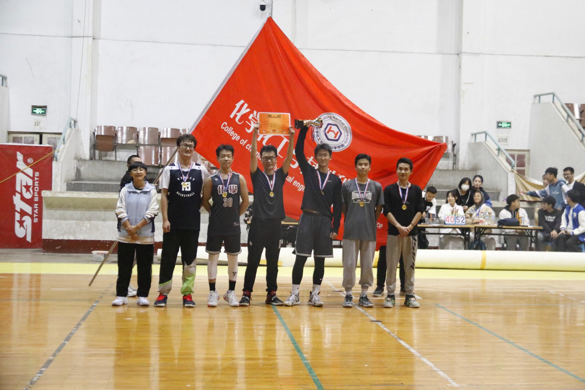 2021年10月24日晚,化学化工与材料科学学院于千佛山校区体育馆举办2021篮球联赛决赛。本次活动由化学院文化与体育部主办,在现场观赛的同学的加油助威声中2019级制药免师队终得桂冠。