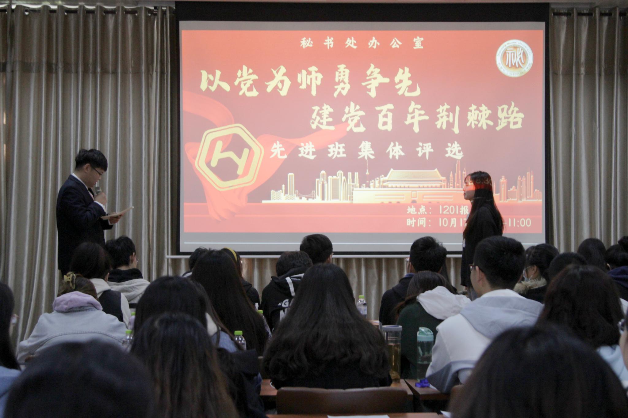 10月17日上午,化学化工与材料科学学院于千佛山校区1号教学楼1201报告厅举行“建党百年荆棘路,以党为师勇争先”先进班集体评选活动。本次活动由秘书处办公室举办,团员自我管理委员会与学生会部分成员,2019级、2020级以及2021级各班班长和团支书参加活动。