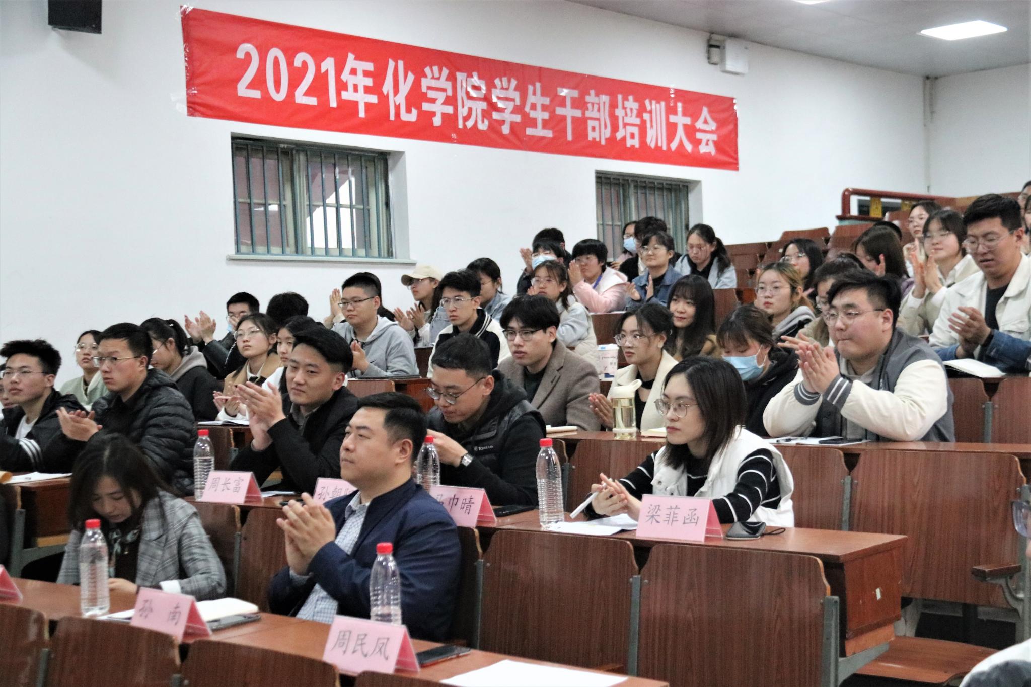 3月22日中午,化学化工与材料科学学院于千佛山校区一号教学楼1215教室举办学生干部培训会。学院党委副书记孙南,2017级辅导员高艳丽,2019级辅导员孙朝阳,研究生辅导员马巾晴,2020级辅导员梁菲函、周长富,以及全体学生干部到场参加。会议由2018级辅导员周民凤主持。