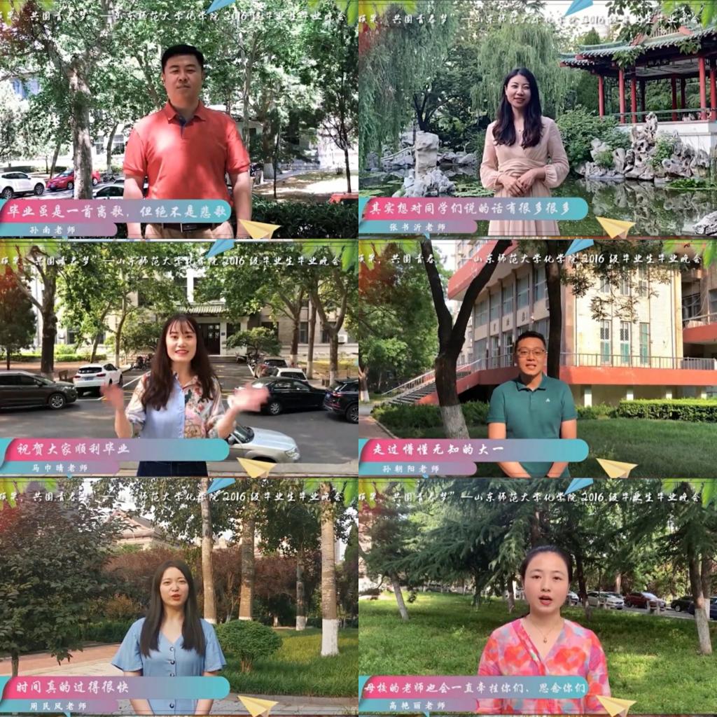 活动伊始,一段视频唤起了毕业生们的温暖回忆。随后,党委副书记孙南及各年级辅导员纷纷送上2016级同学的祝福,每人结尾的“记得常回家看看”,温暖着每一位毕业生的心。本次线上毕业晚会共分“春风不及遇见你”“青云之志终不负”“再回如期仍少年”三个篇章。在第一篇章中,观众们跟随舞蹈《monster》找回初入大学时的青春和活力;听着歌曲《这一生关于你的风景》,追忆时光,慢慢回想四年青春留下的阳光;紧接着是刘麒、张萌、刘兆一合作的原创歌曲《如果说这次你要走》,MV里有四季风景如画的山师,有奋笔疾书过的教室,有晚间漫步的操场,还有吹过教室走廊的最后那一阵风。随后,由毕业生主演的视频带领着大家回忆了大学生活中的小确幸和小美好。在第二篇章中,观众们跟随《歌曲串烧》和《喜欢你》,回忆了在梦想的道路上追光前行的自己;山师化院声临其境之《你好,少年》,又带领大家走过大学时光。一段低年级同学对毕业生的祝福视频后,弹幕里满屏的“毕业快乐”的抽奖环节更是使欢送气氛达到高潮。在第三篇章中,毕业生们伴着诗朗诵《毕业》,一起走过春、夏、秋、冬和毕业季;最后,以合唱歌曲《凤凰花开的路口》结束本次晚会。
