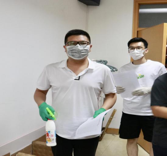 研究生辅导员马巾晴提醒同学们:领回物资后一定注意使用方式,在学校切要按时作息,保持规律生活。院研究生会卫生部部长纪文杰也提出了四点要求,来帮助同学们做到安全防控。包括:1.仔细阅读宿舍消毒通风制度并贴于宿舍门后;2.配制合适浓度的84消毒液,每日两次消毒,使用过程中注意安全3.填写每日消毒记录表,每月上交;4.每日提交e校园中个人健康有关内容。
